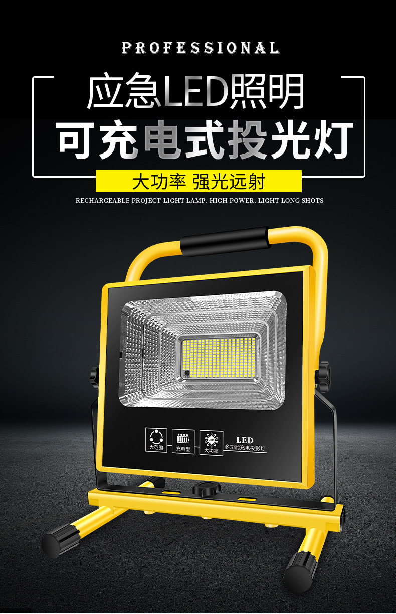 戶外led工地照明燈超亮應急充電投光燈強光露營燈夜市地攤燈停電
