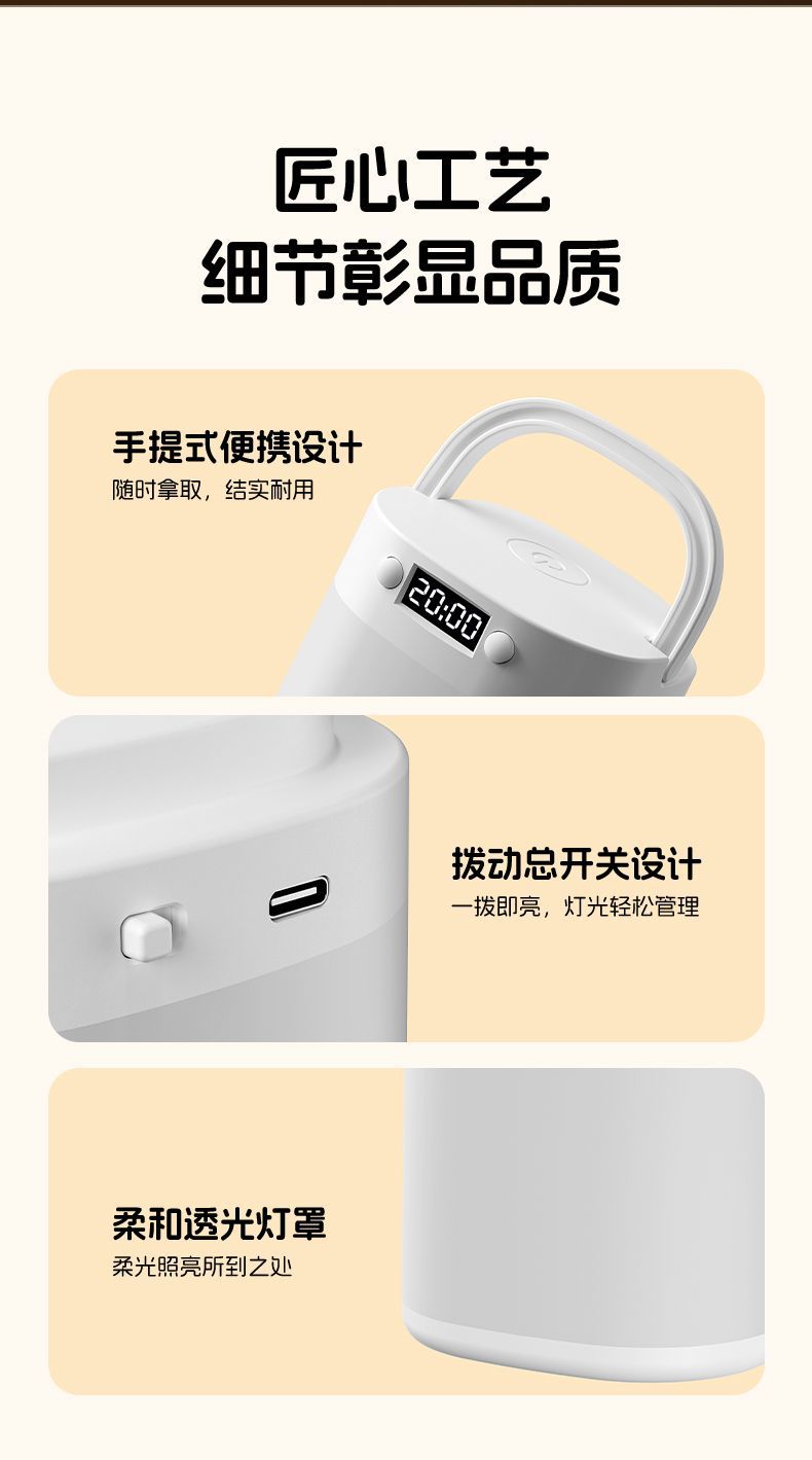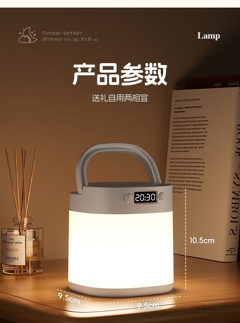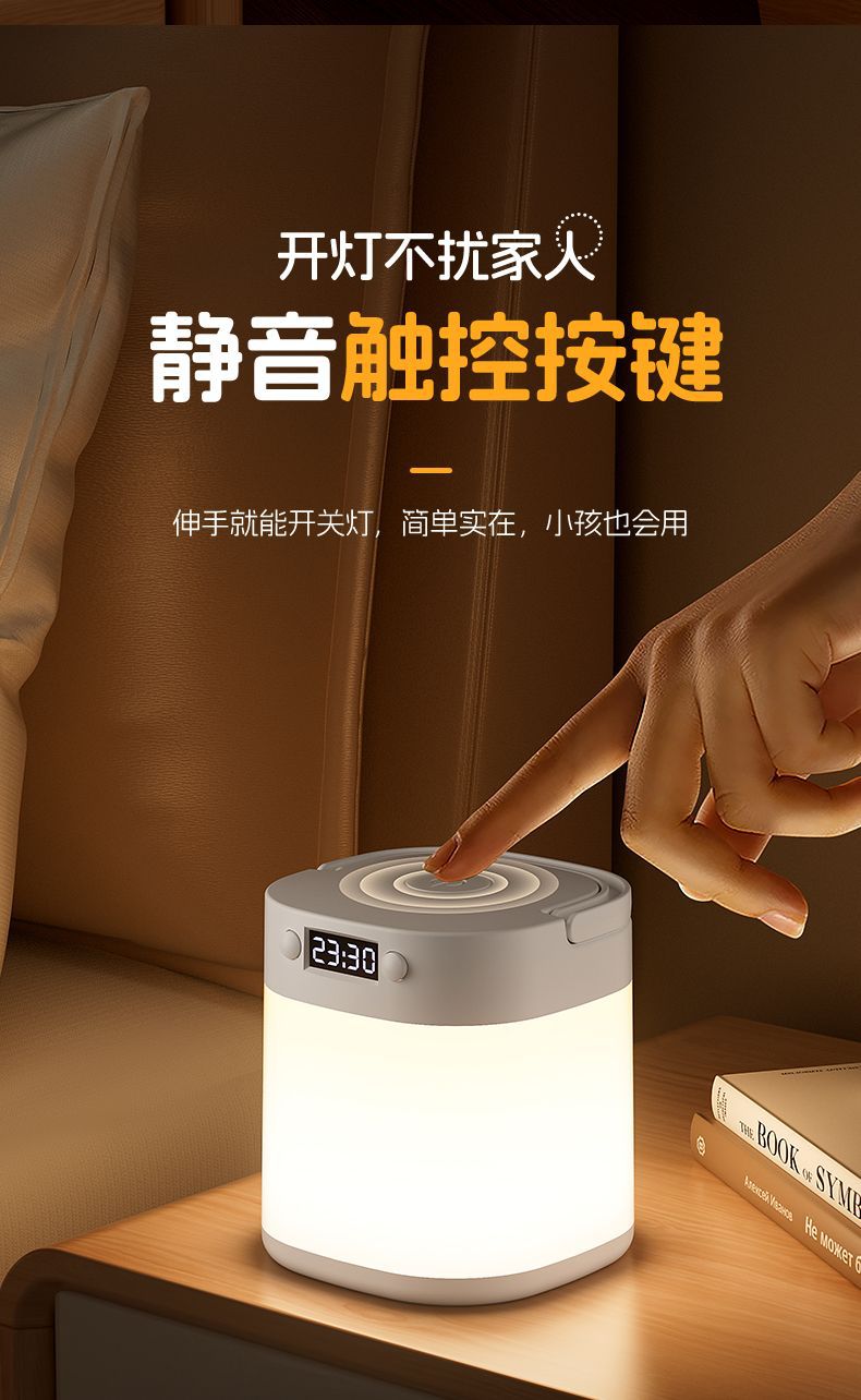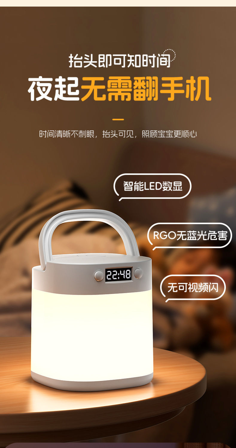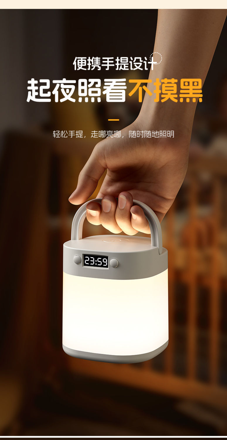 遙控時鐘小夜燈床頭燈充電手提戶外露營嬰兒喂奶臥室護眼台燈睡眠