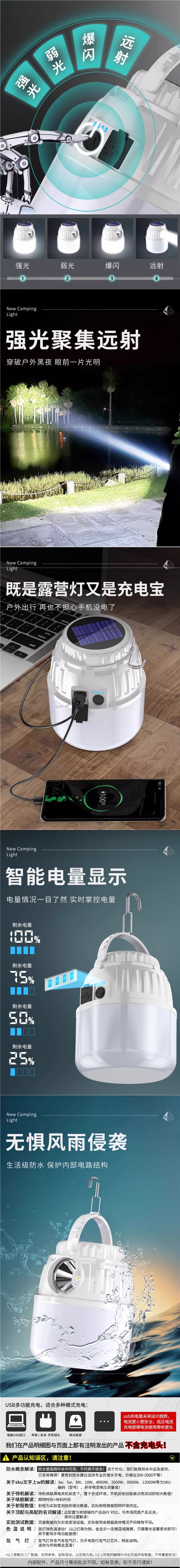 太陽能露營燈夜市擺攤照明停電應急燈充電超長續航戶外帳篷燈掛燈