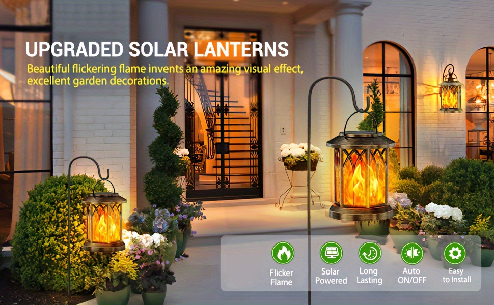 Hanging Solar Lanterns Lights Outdoor Flickering Flames