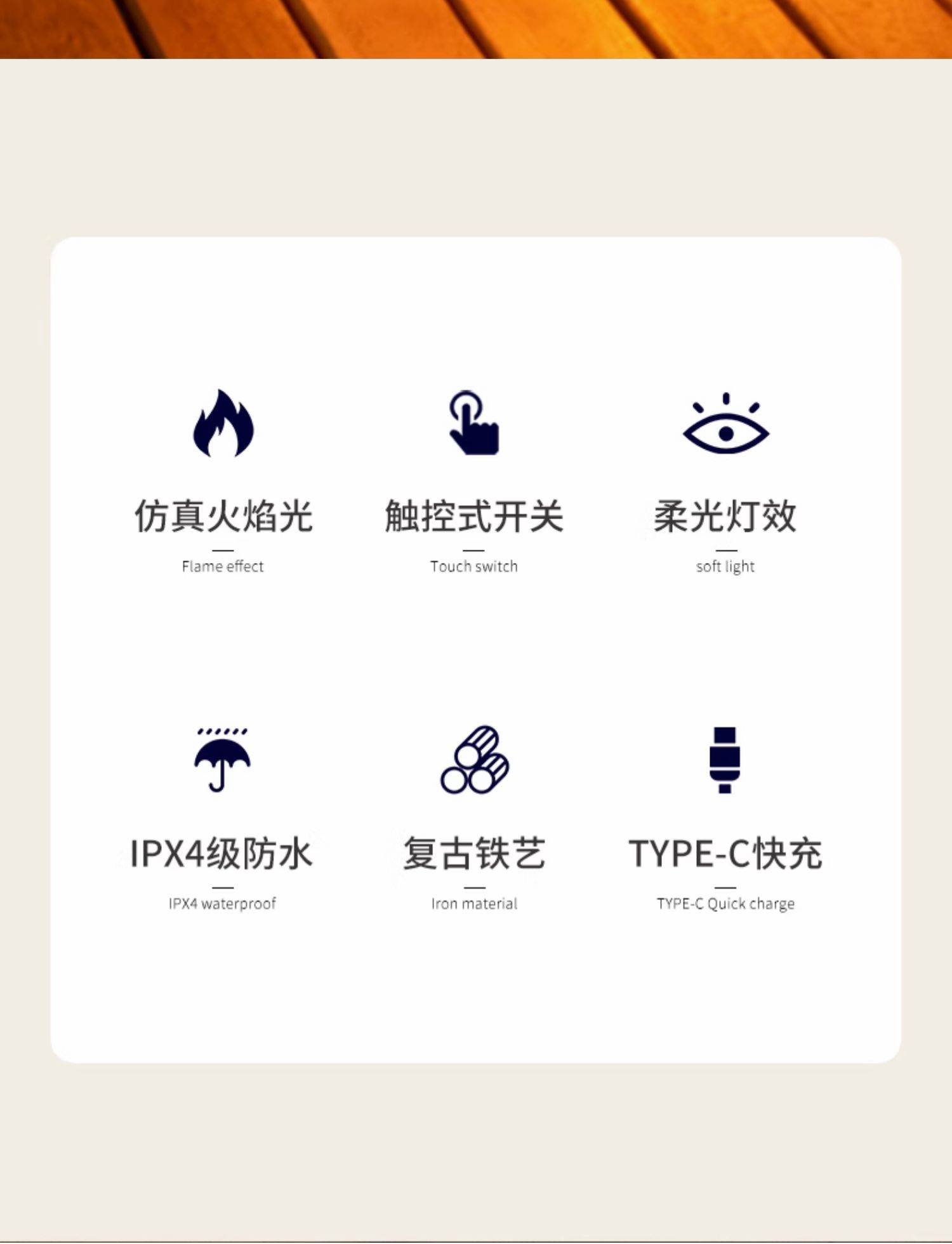 | 顔色 | 圓柱款+火焰光+太陽能 Type-C快充 |