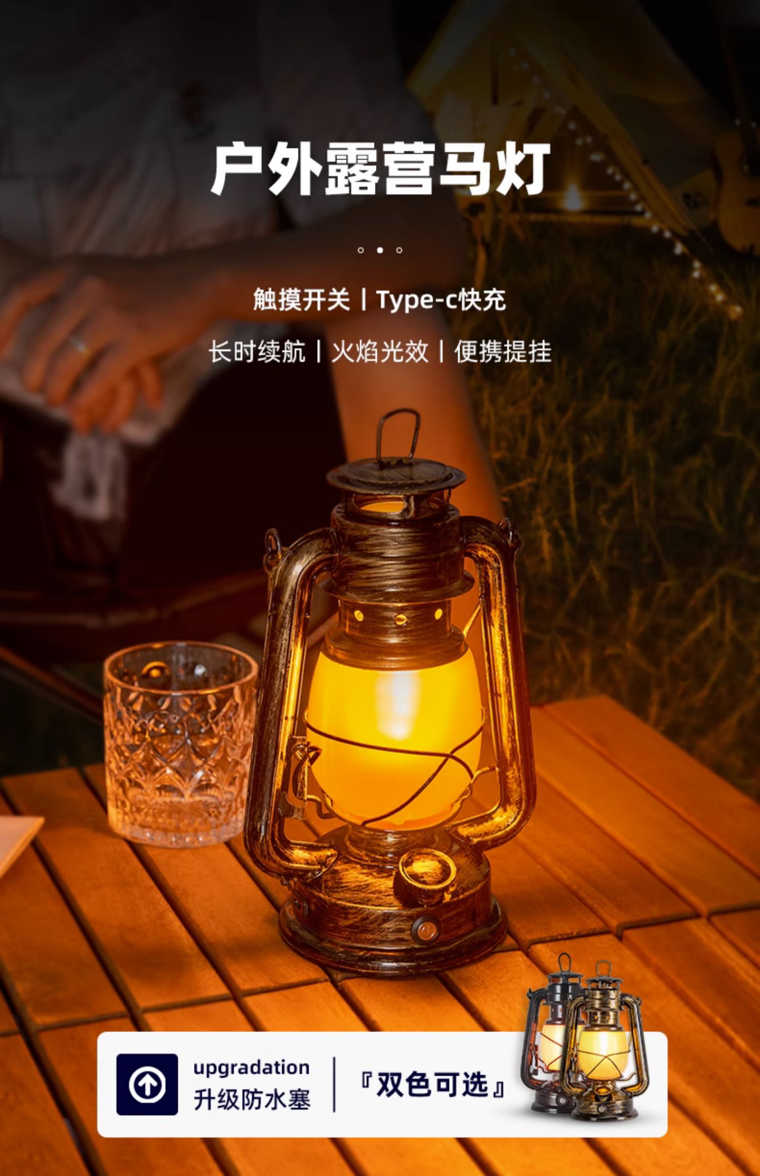 露營燈野營燈復古馬燈氛圍燈手提燈帳篷燈充電煤油燈太陽能戶外燈