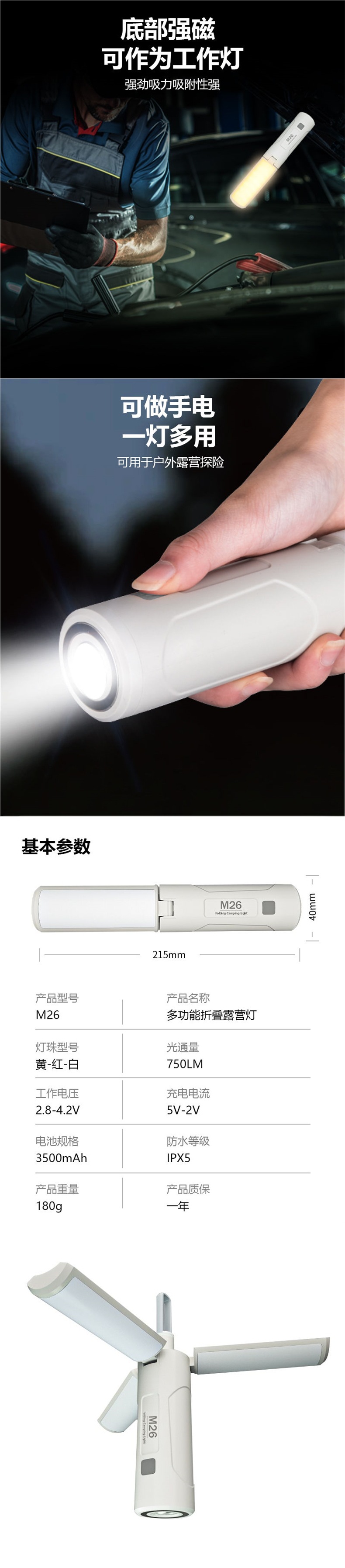 照明燈戶外折疊野營帳篷工作氛圍多功能露營新款警示燈磁吸手電