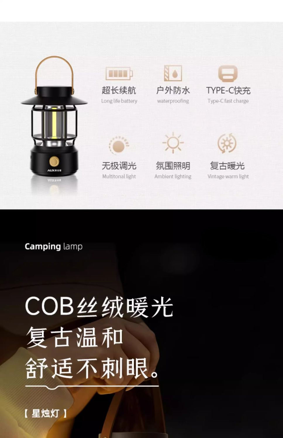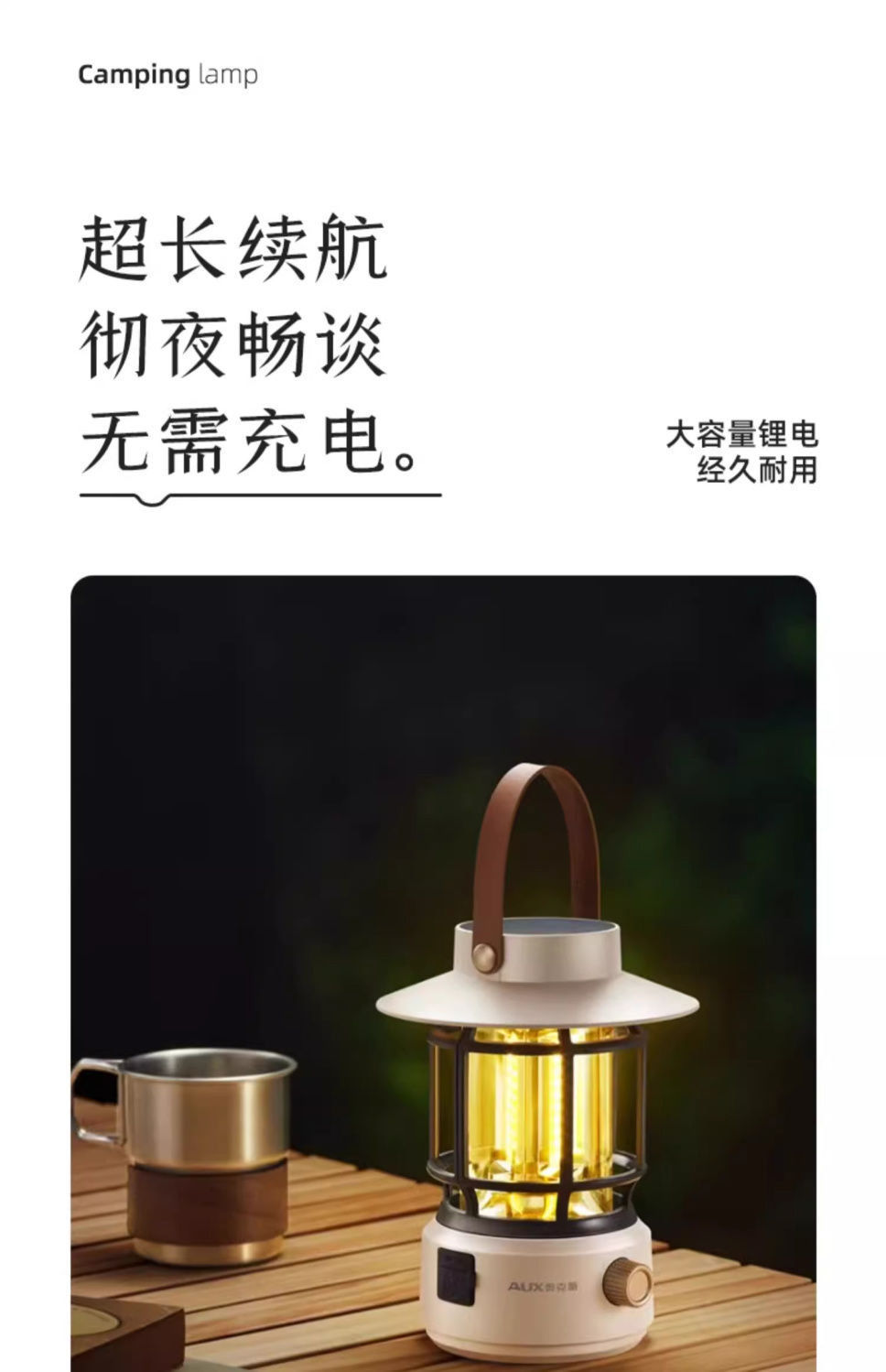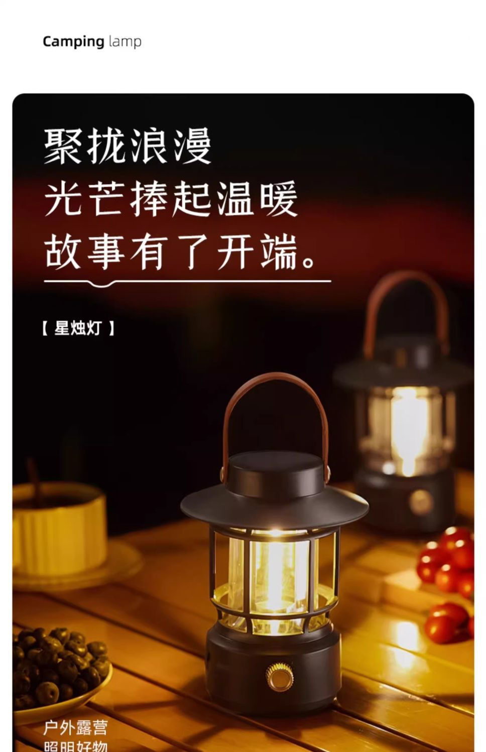 Ehd露營燈超長續航手提多功能暖光復古可充電野外露營照明