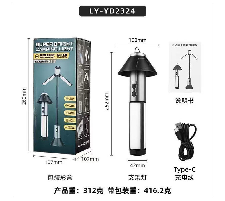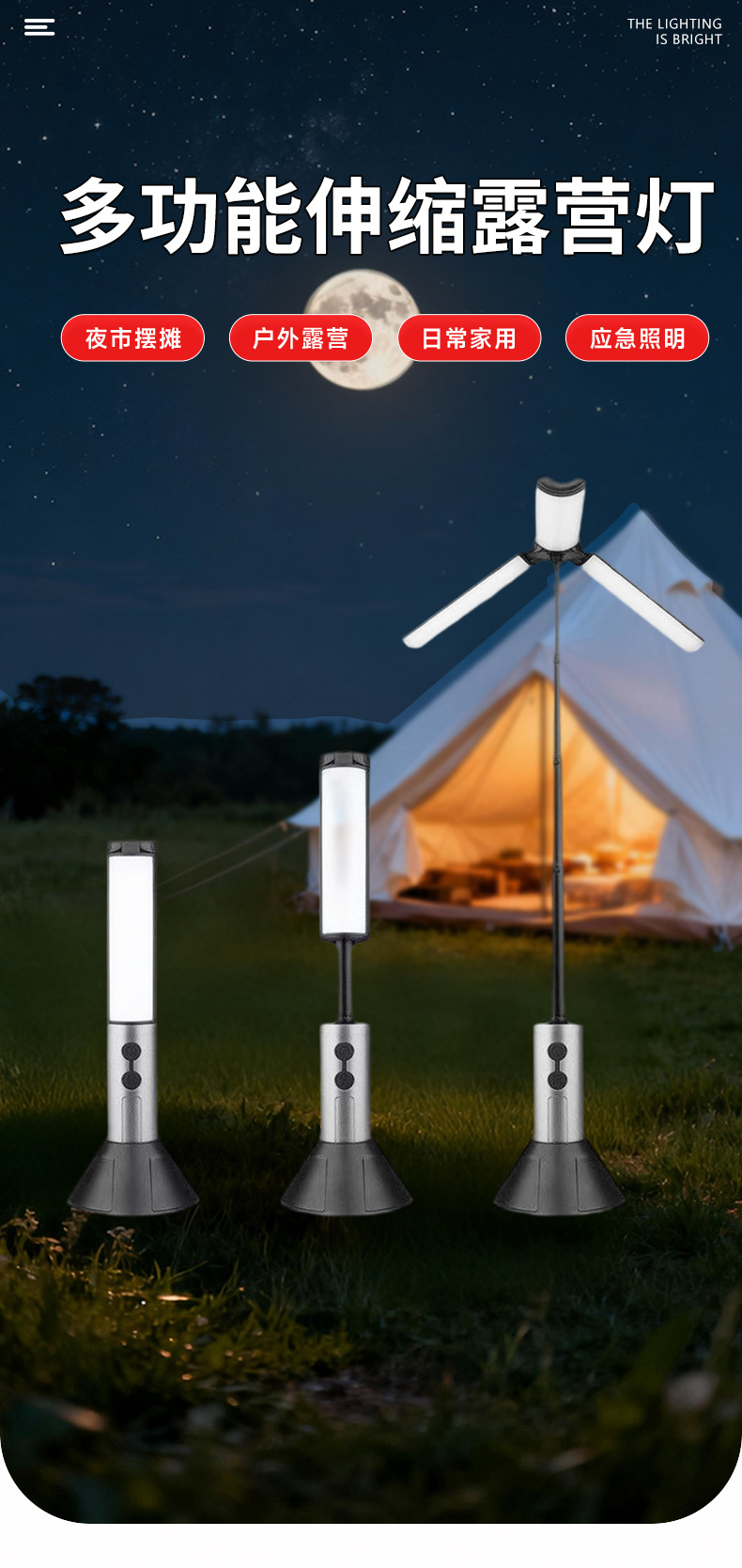 多功能伸縮露營燈可攜式戶外露營單合一手電筒野營燈高亮柔光不刺眼