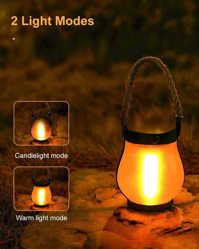 新款太陽能麻繩火焰燈懸掛戶外野營燈充電庭院裝飾多功能照