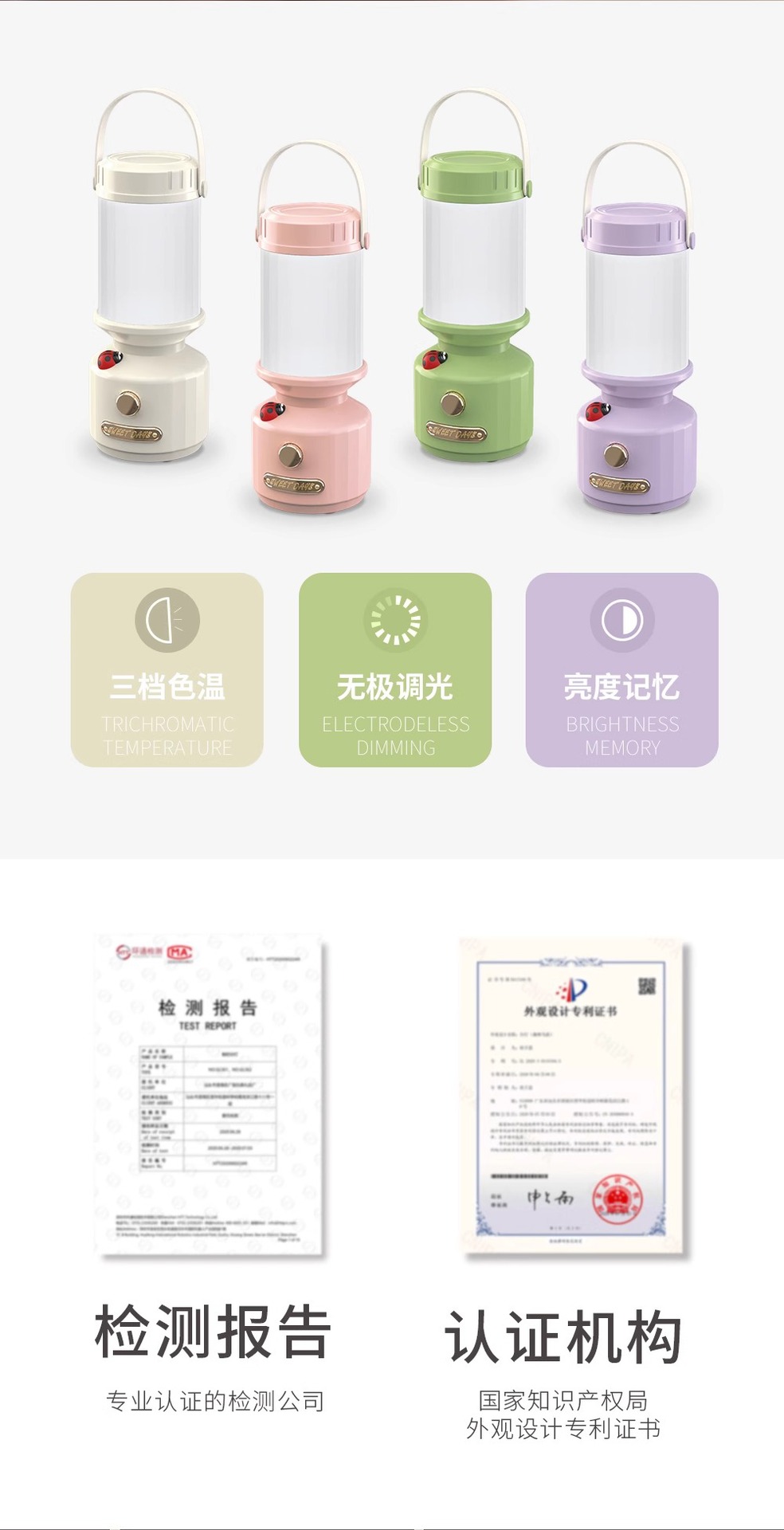 | 顔色 | 瓢蟲露營夜燈紫色·充插兩用·一燈多用·智能護眼·長續航·3檔 |