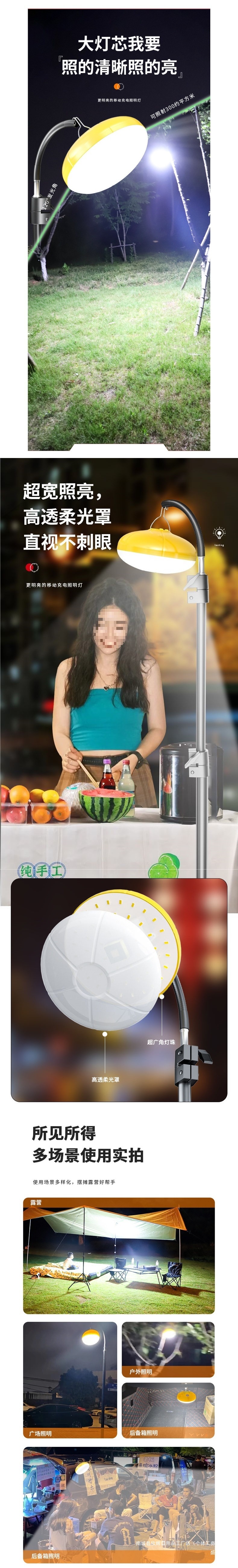 擺攤燈戶外大容量露營燈led充電式照明燈泡夜市擺地攤桌面支架燈