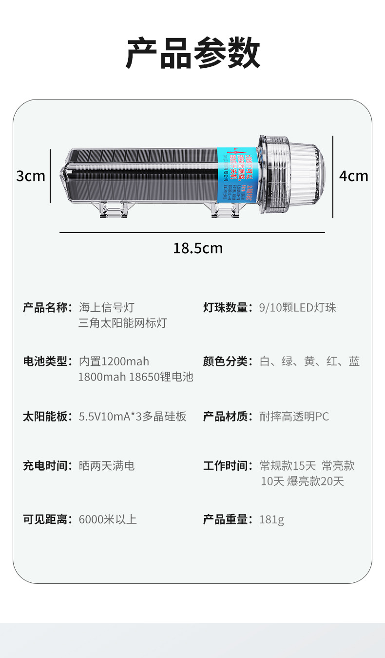 | 顔色 | 高亮/特亮3連閃紅綠 可視距離12000米 |