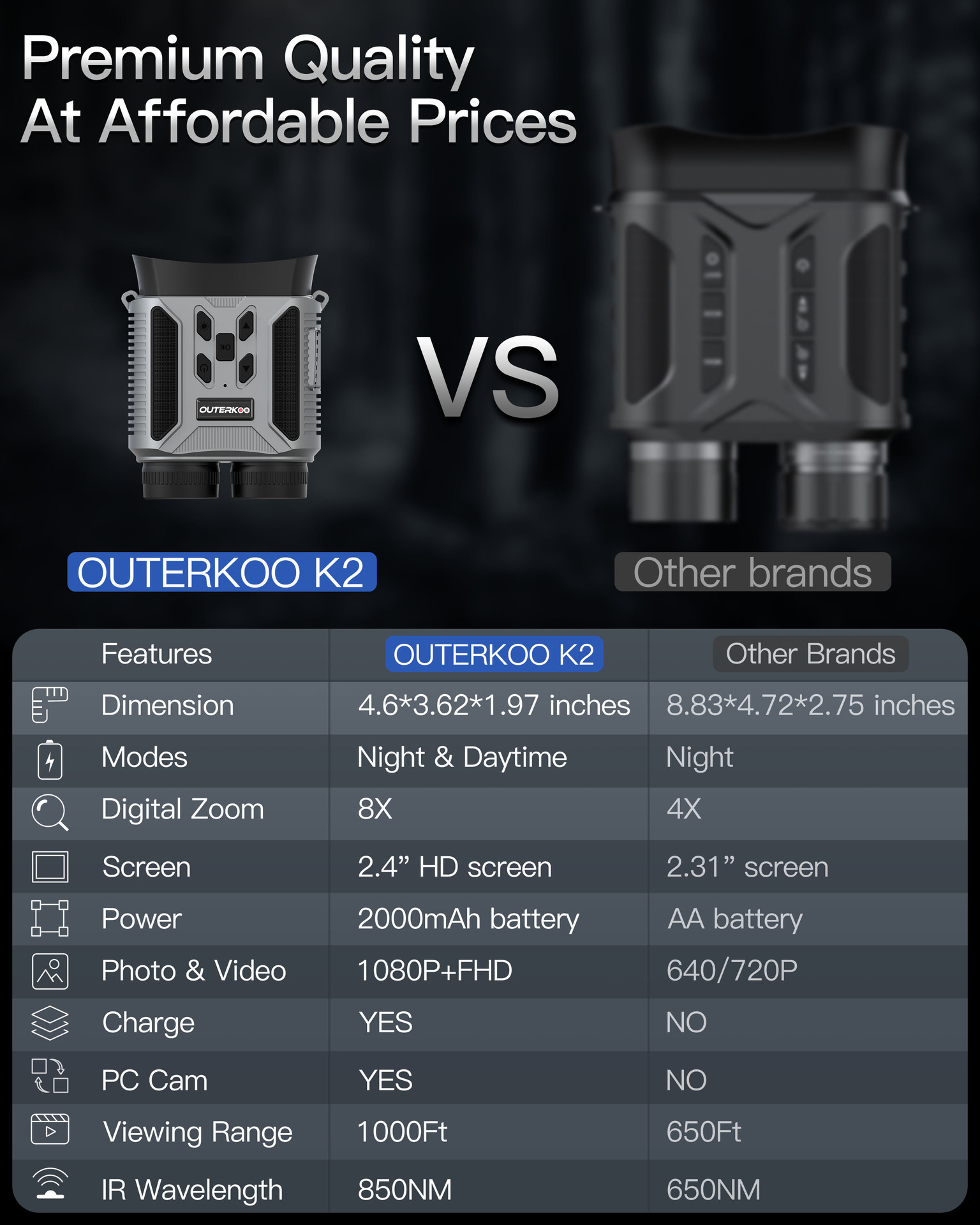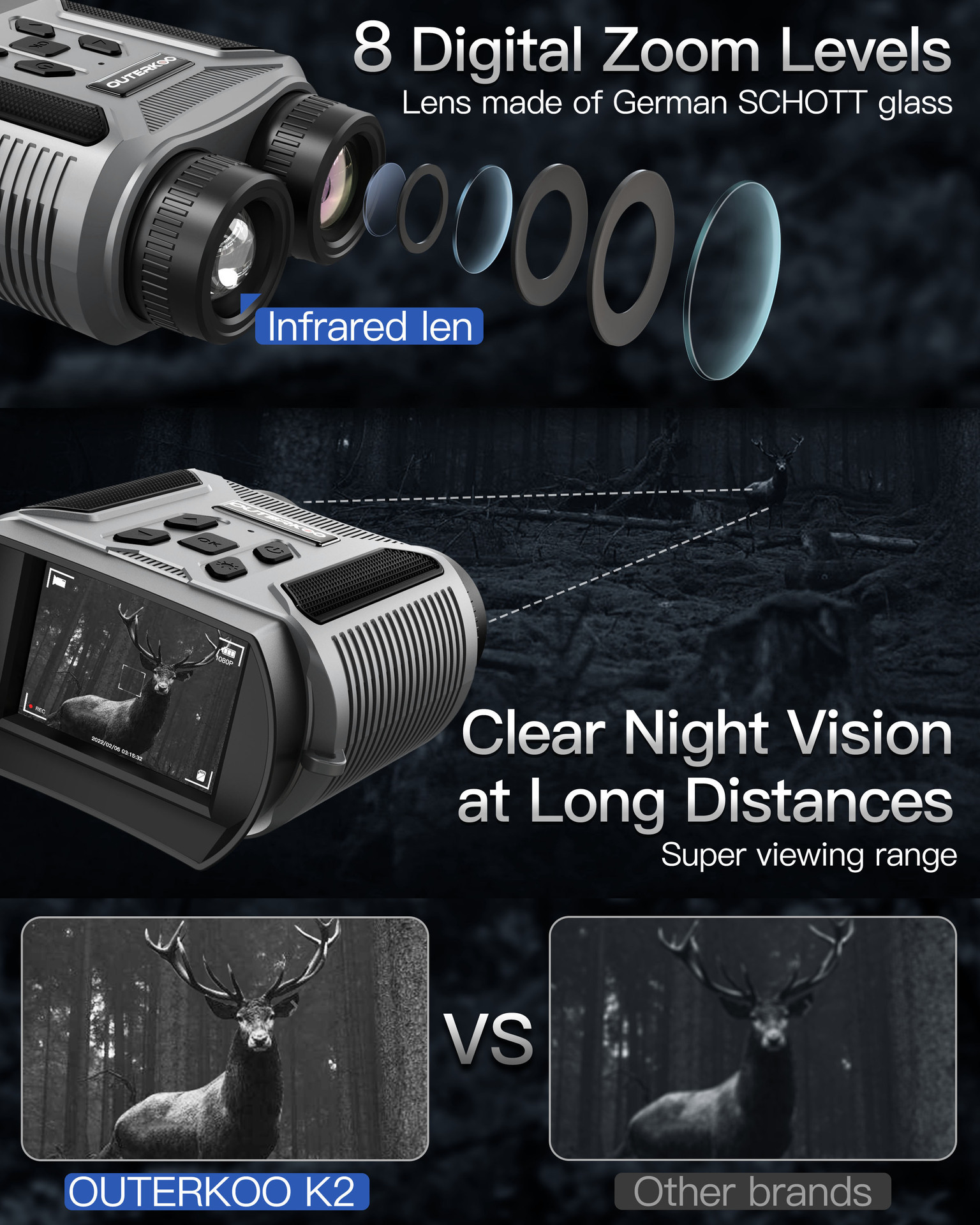 4K雙目高清紅外數碼夜視儀望遠鏡夜間全黑觀鳥狩獵戶外成像儀