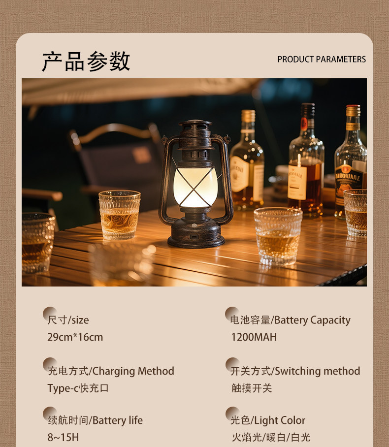 充電酒吧台燈氛圍燈馬燈太陽能戶外超長續航露營燈煤油燈提燈桌燈