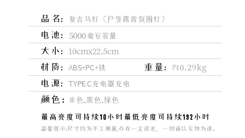 新款戶外照明露營燈超長續航充電營地氛圍復古野營帳篷馬燈