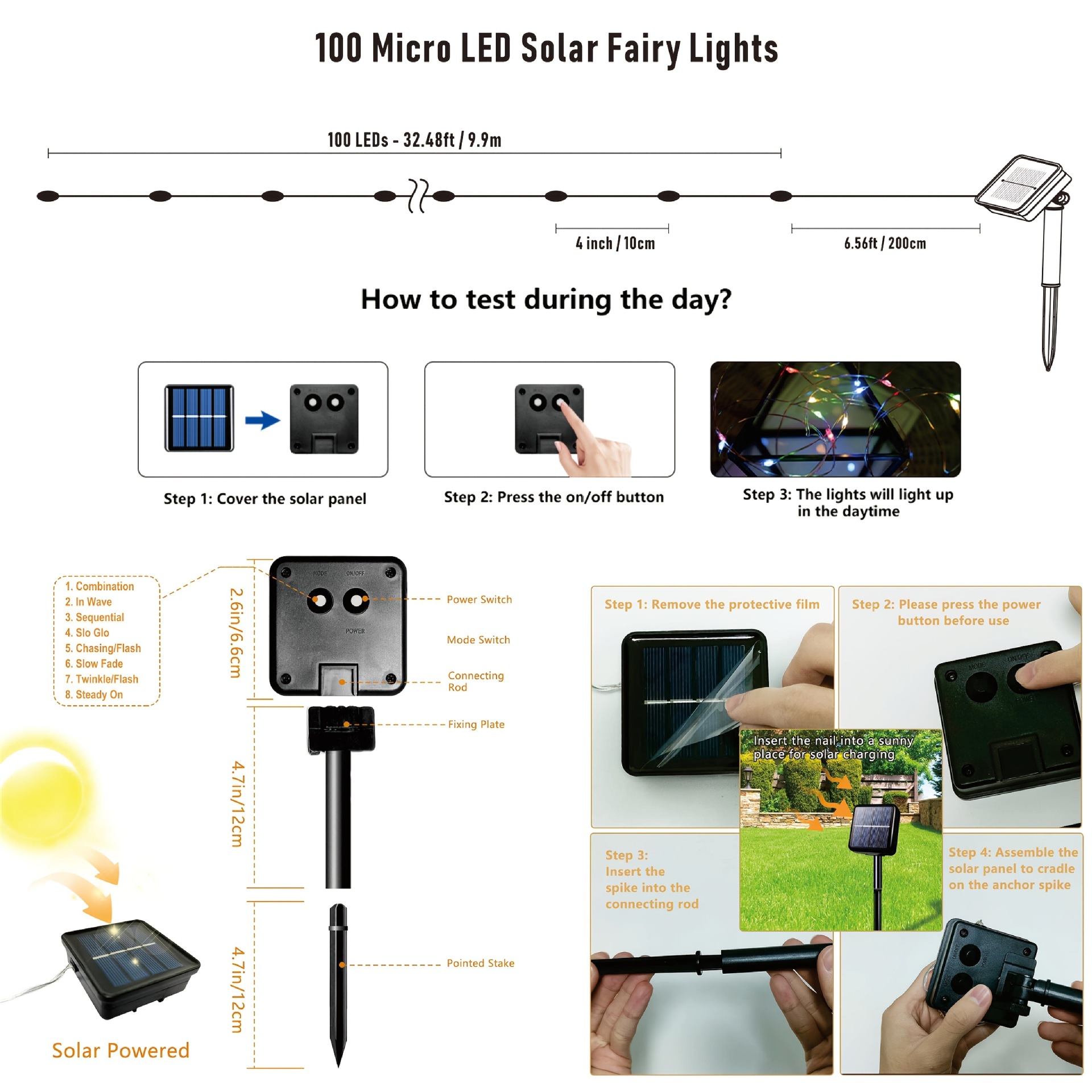 8 Pack Solar Powered Fairy Lights, 33FT 100 LED Outdoor