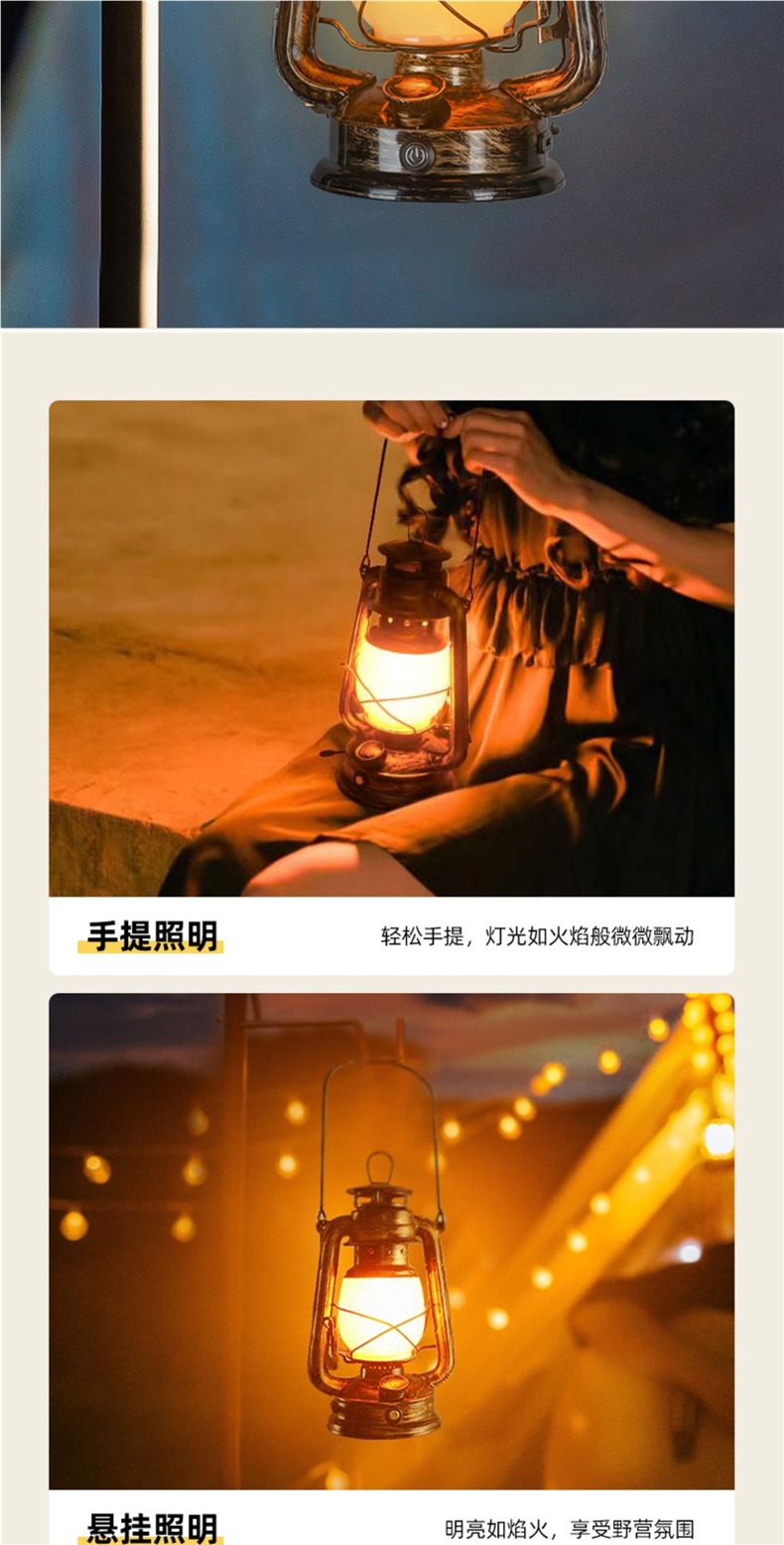 露營燈野營燈復古馬燈氛圍燈手提燈帳篷燈充電煤油燈太陽能戶外燈