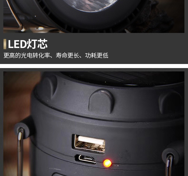 露營燈太陽能馬燈帳篷手提充電家用戶外探照燈多功能野營照明
