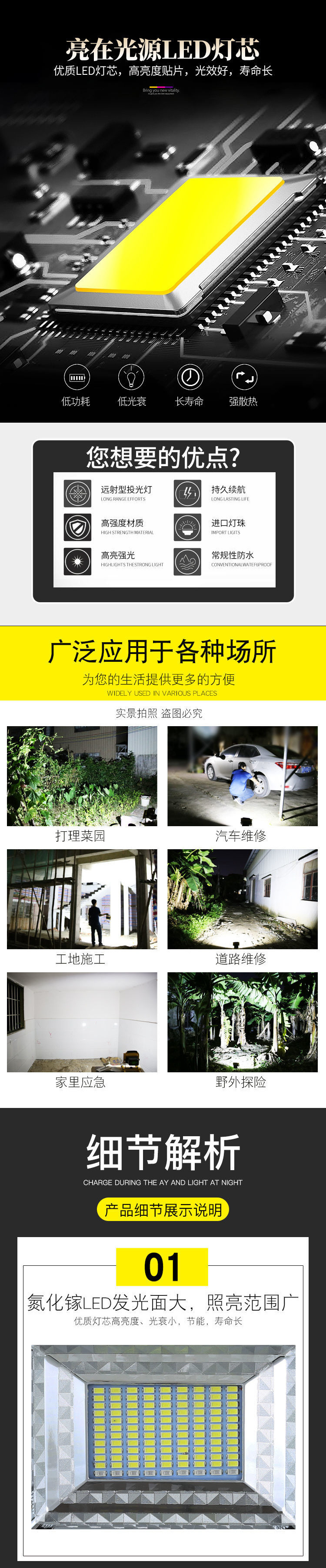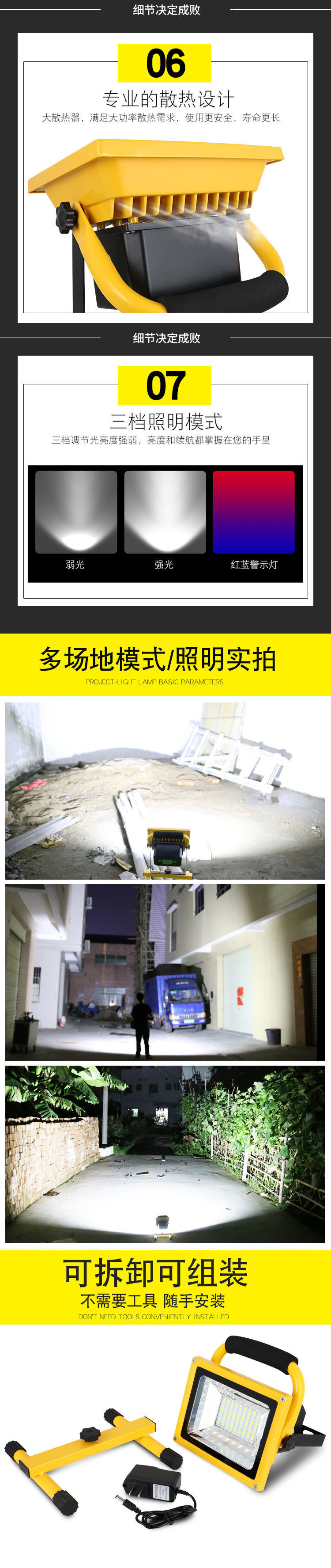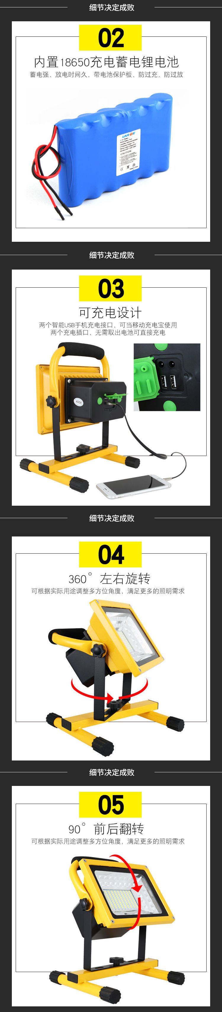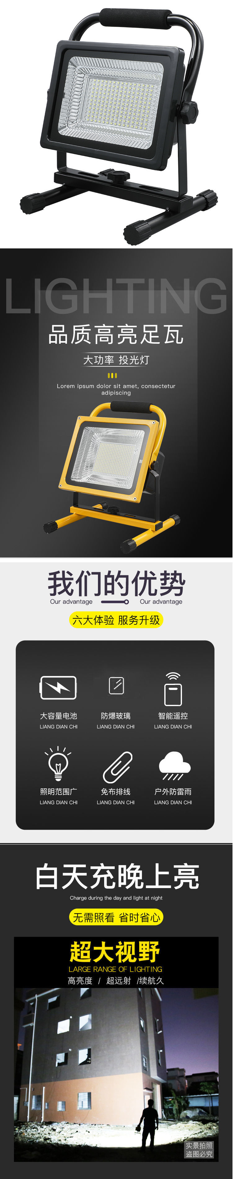 戶外照明可充電式投光燈工地工程應急露營燈野營手提強光