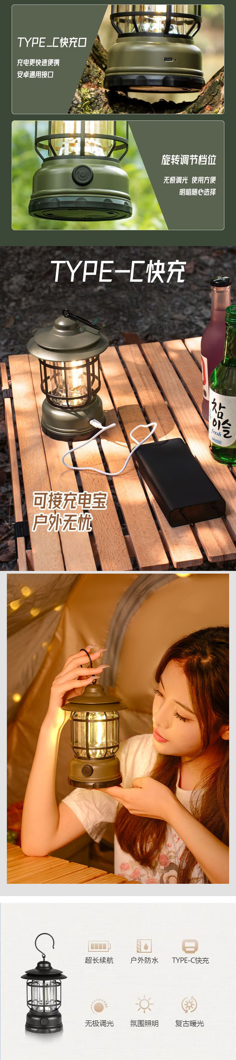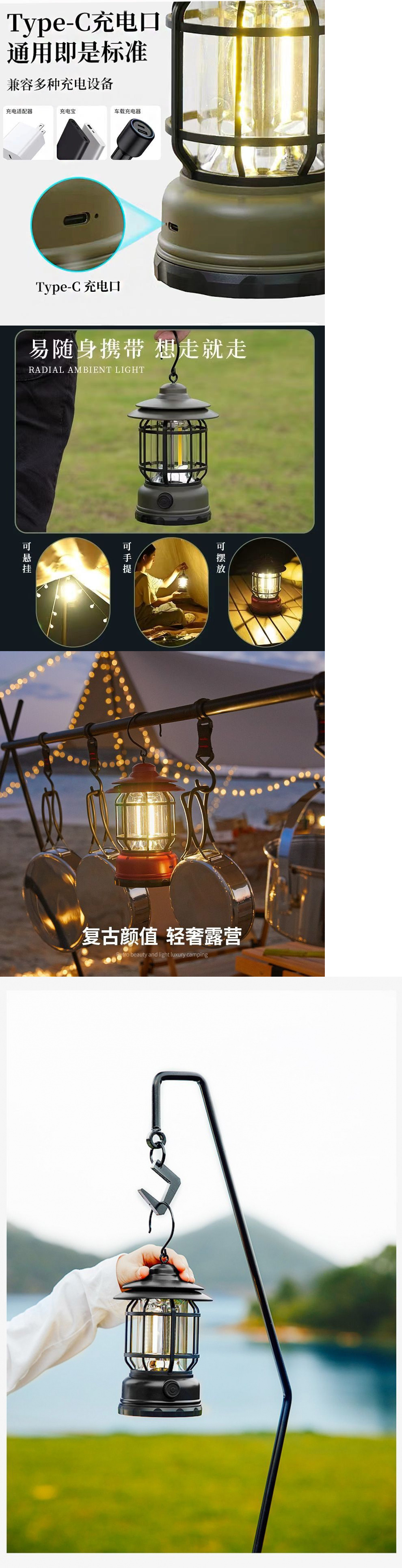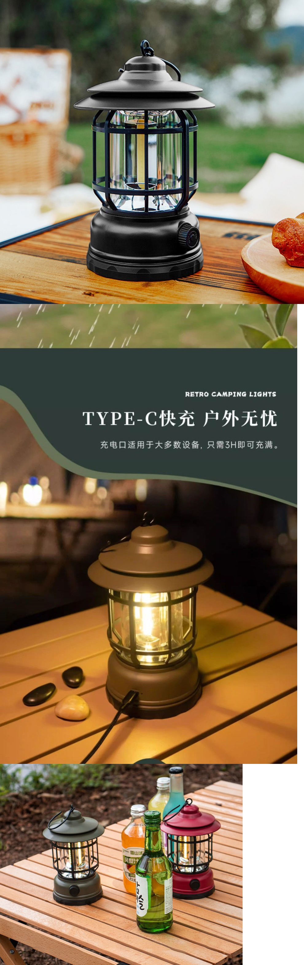 可充電帳篷營地照明照明燈復古戶外露營氛圍野營馬燈可充電帳篷營