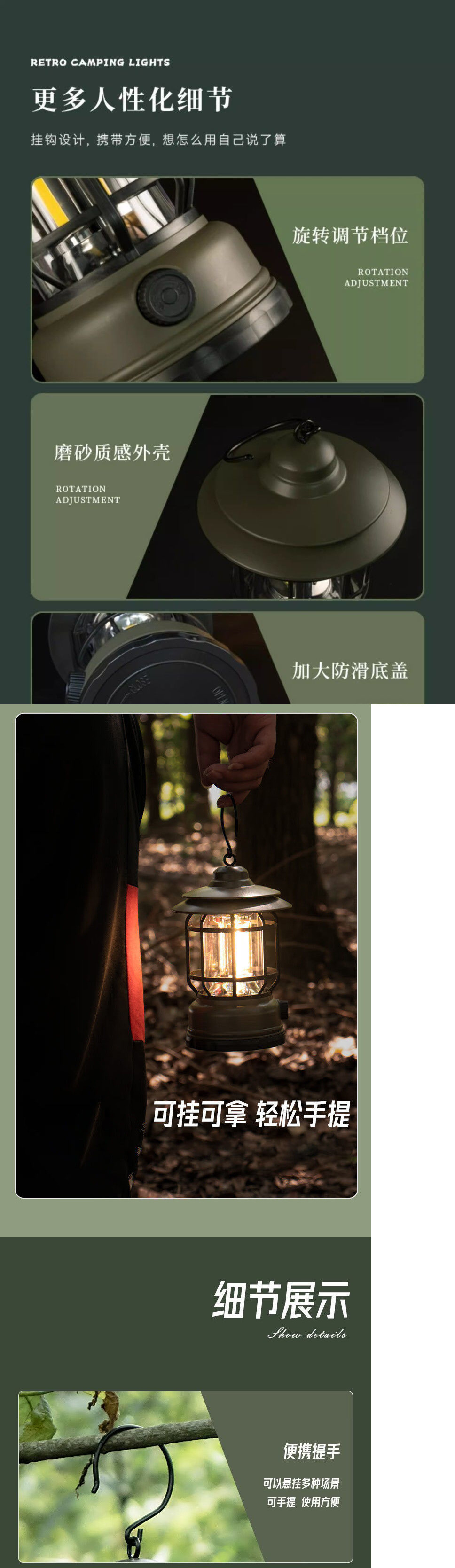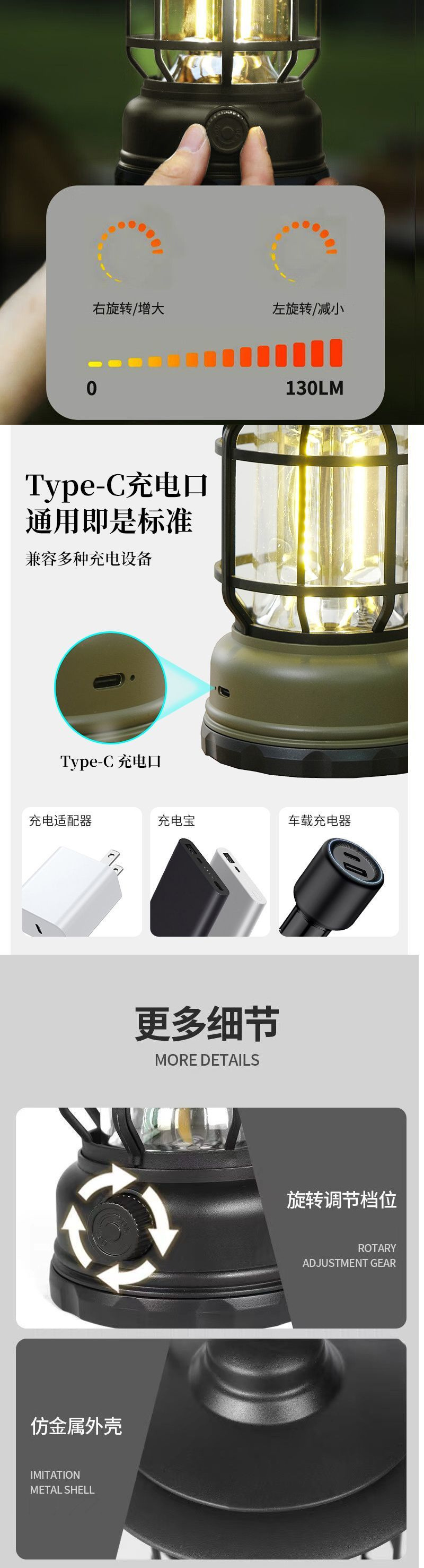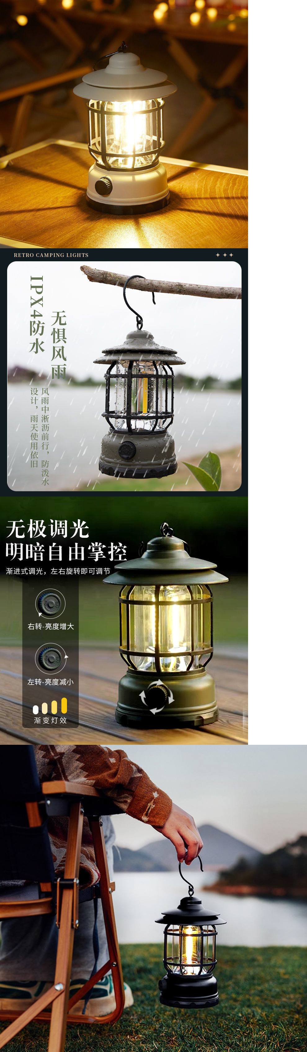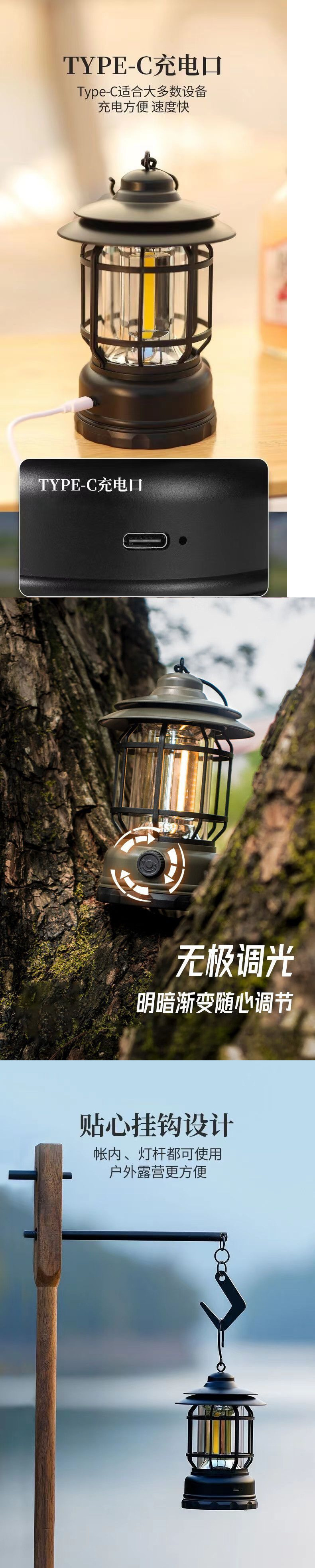 可充電帳篷營地照明照明燈復古戶外露營氛圍野營馬燈可充電帳篷營