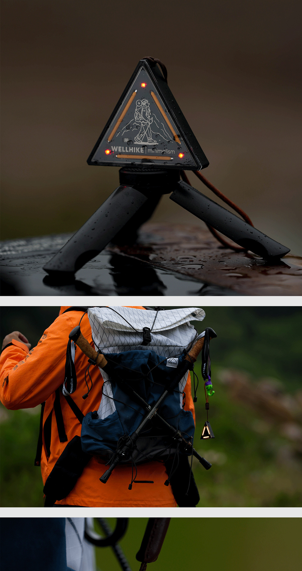戶外露營徒步夜跑多檔可調節警示安全警示掛繩磁吸觸控螢幕三角燈
