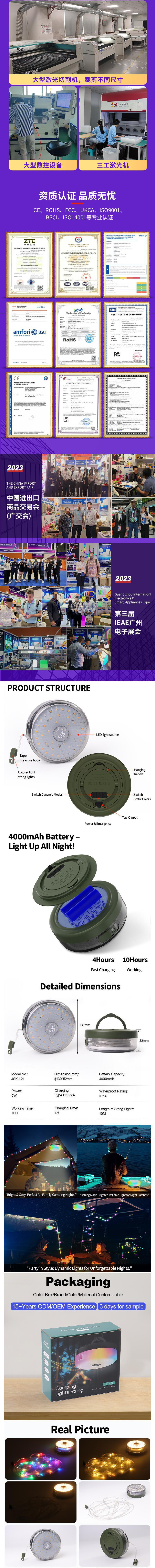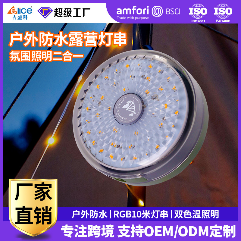 戶外帳篷七彩串燈帶卷尺收納可攜式防水幻彩氛圍野營燈