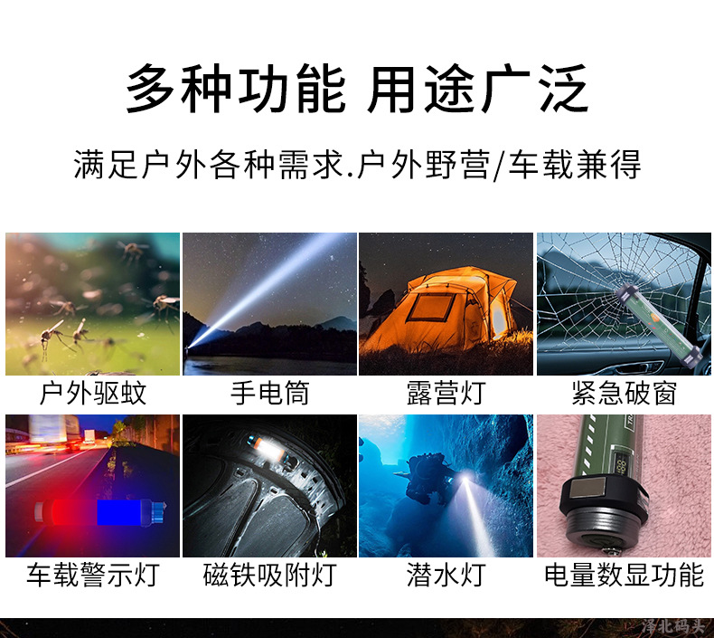 戶外露營燈超長續航強光多功能家用充電式潛水驅蚊磁吸汽修手電筒