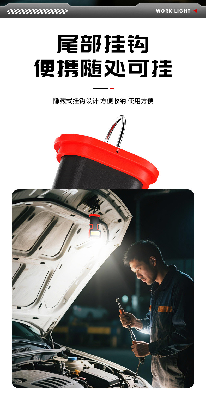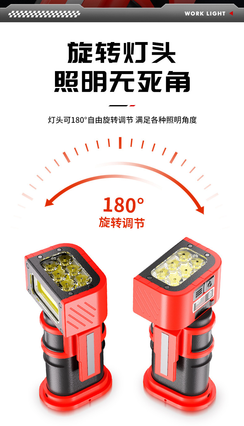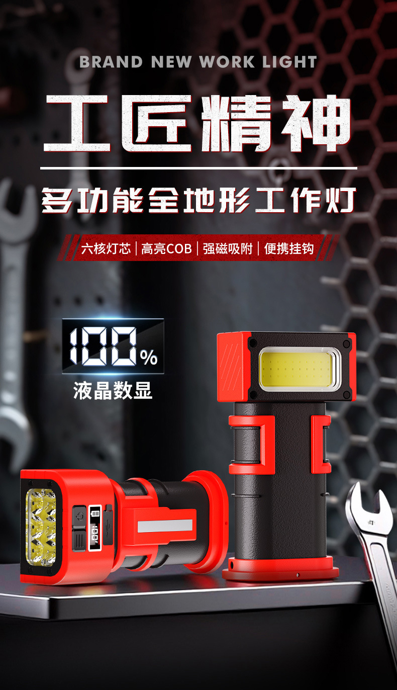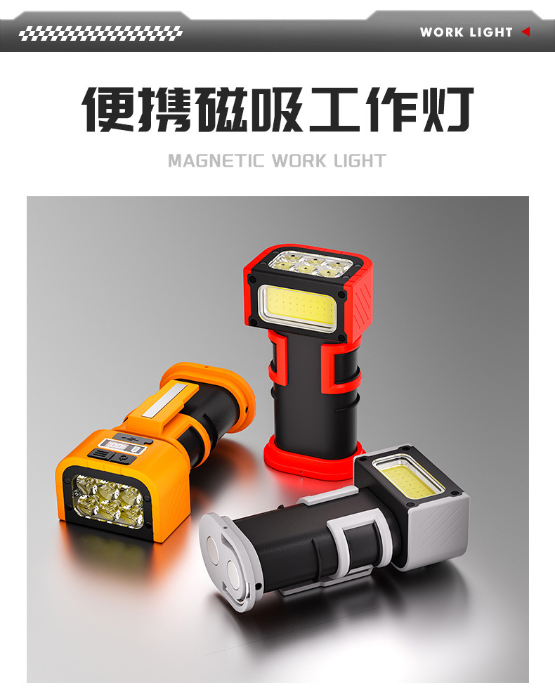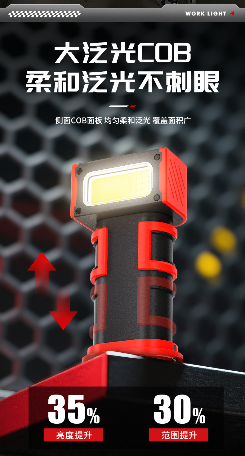 新款多功能LED工作燈旋轉調節COB照明帶磁吸迷你充電手電筒
