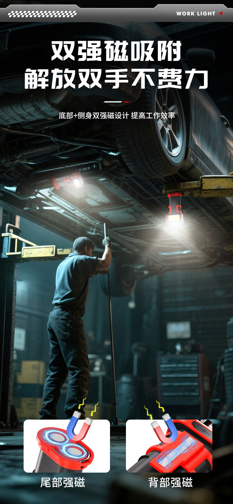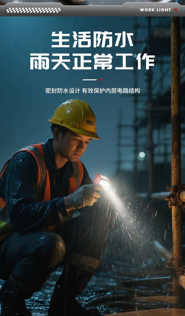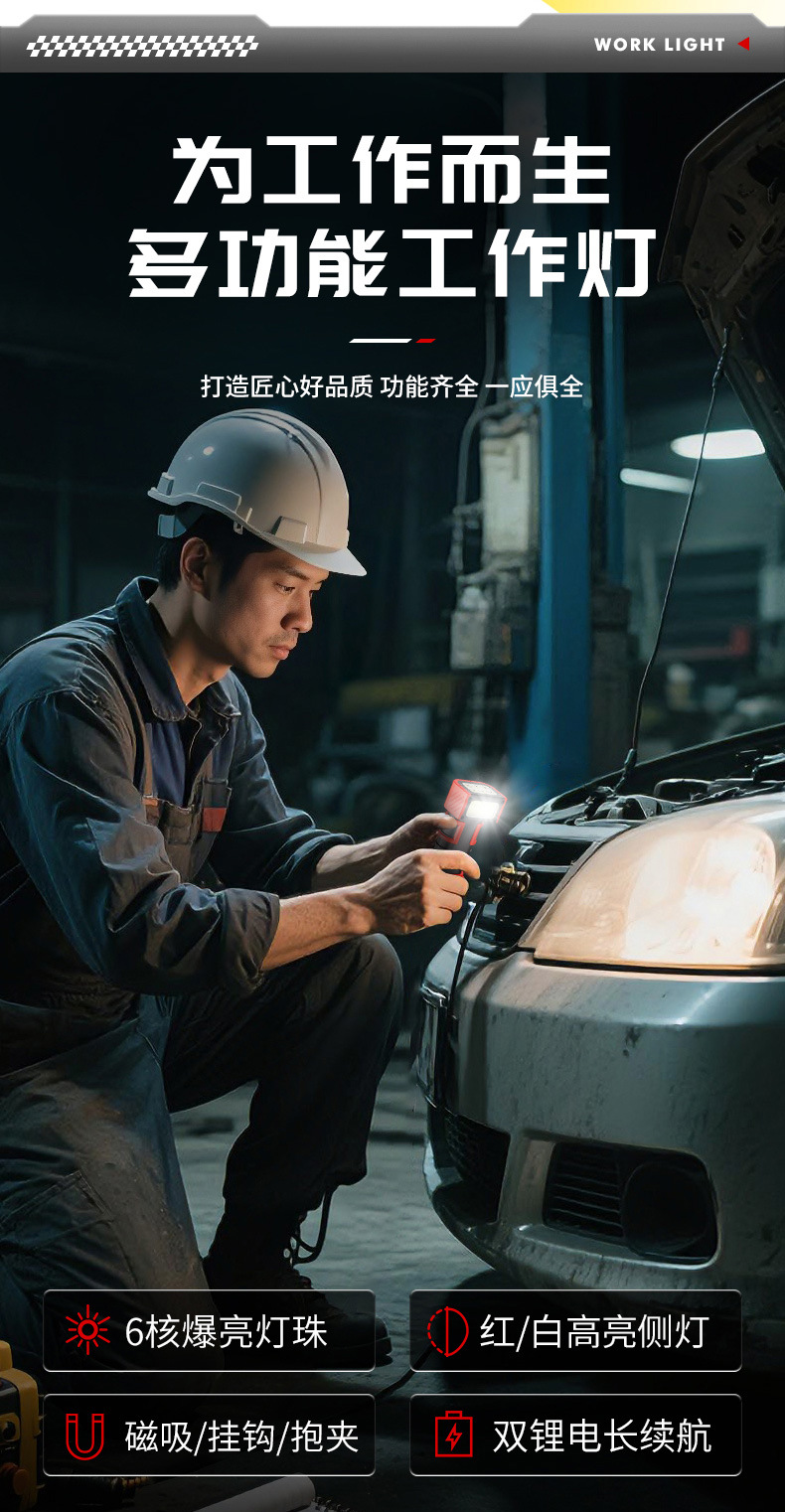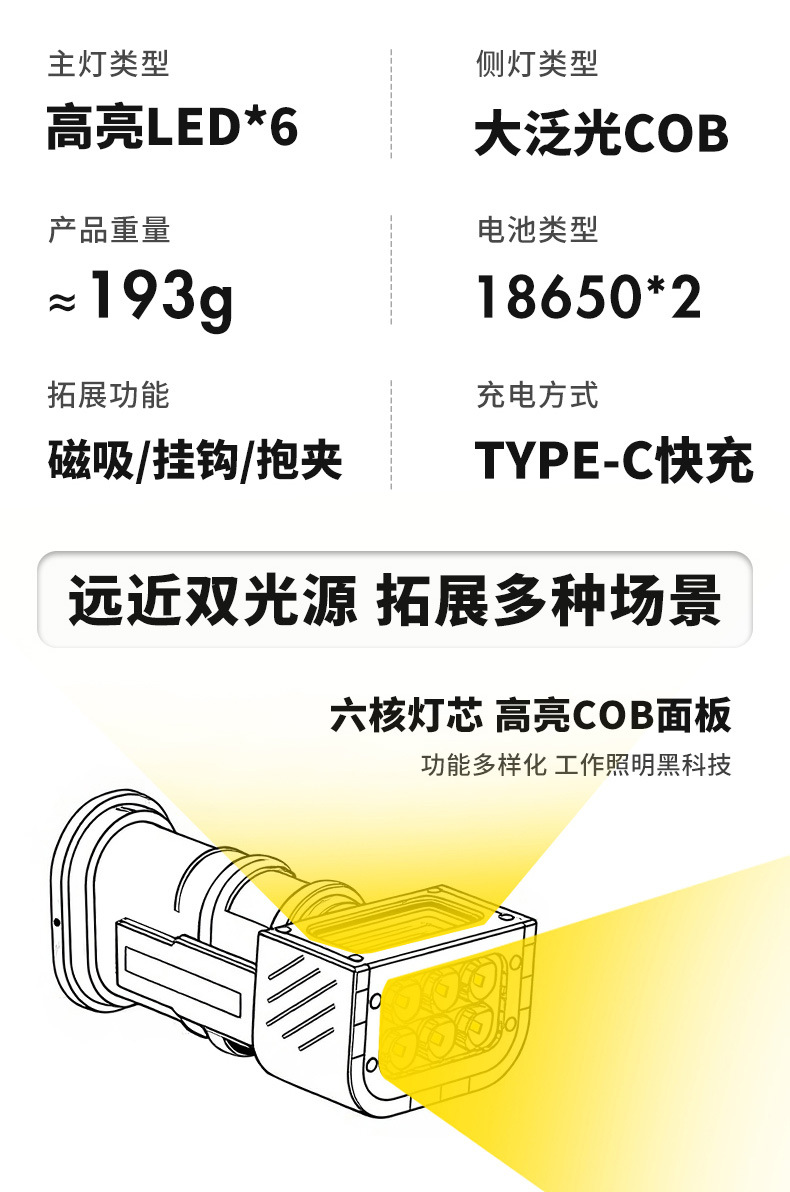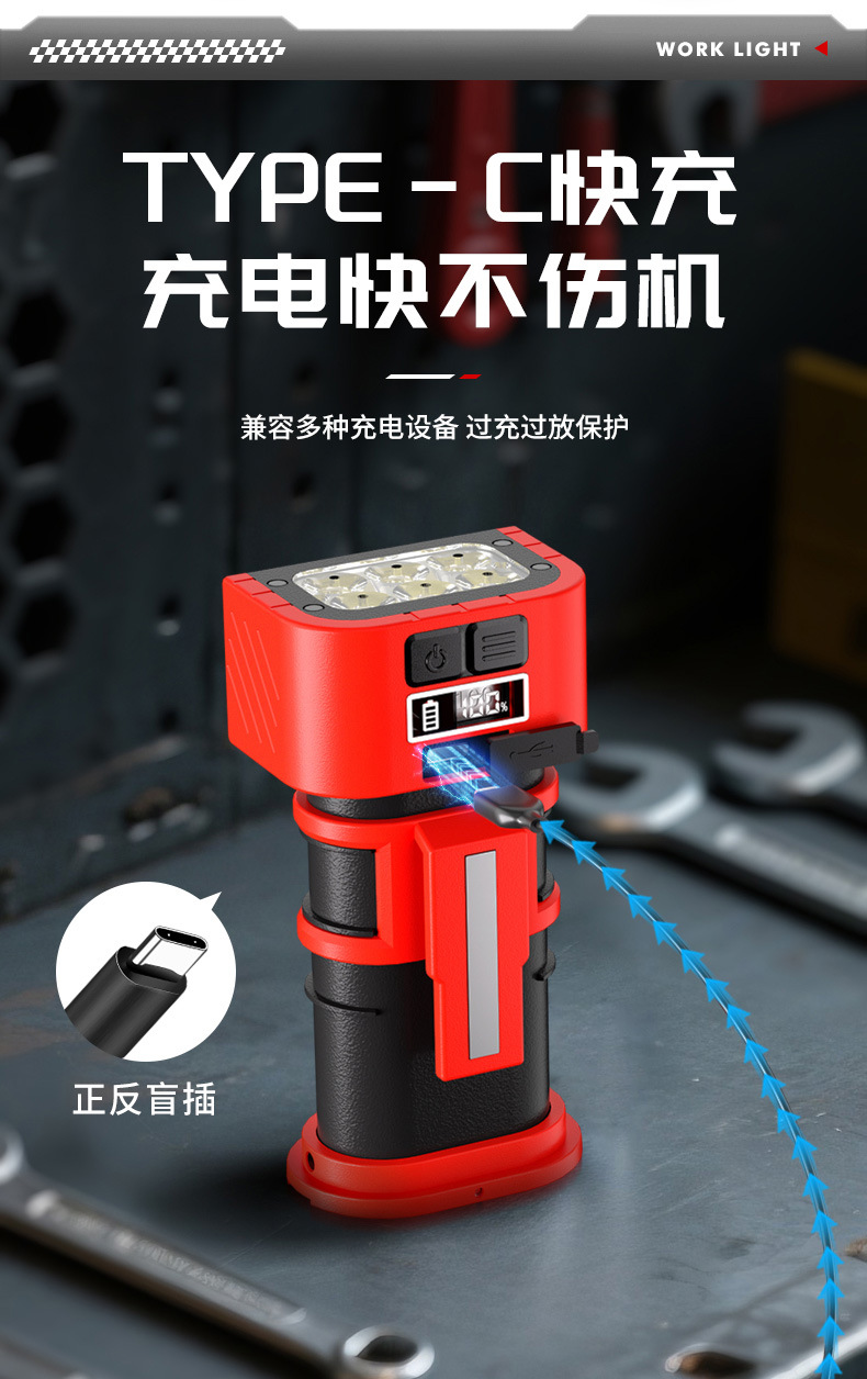 新款多功能LED工作燈旋轉調節COB照明帶磁吸迷你充電手電筒