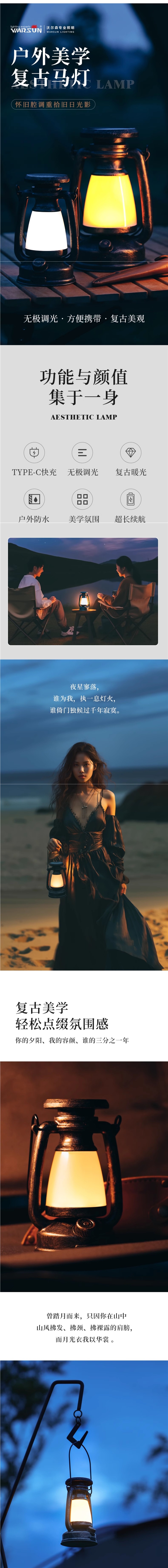 沃爾森戶外露營充電馬燈帳篷野營氛圍營地強光超亮天幕復古掛燈
