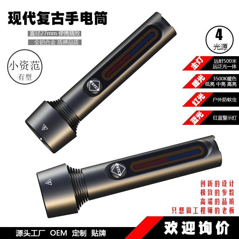 復古範傳承經典露營燈小夜燈戶外照明強光高亮鋁合金金復古手電筒