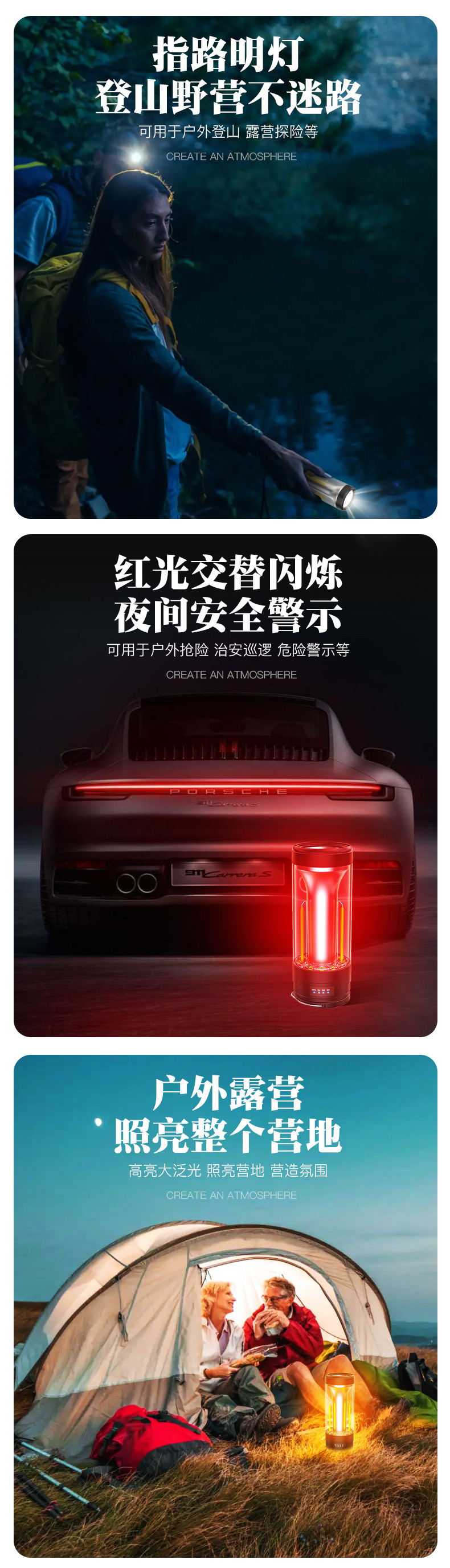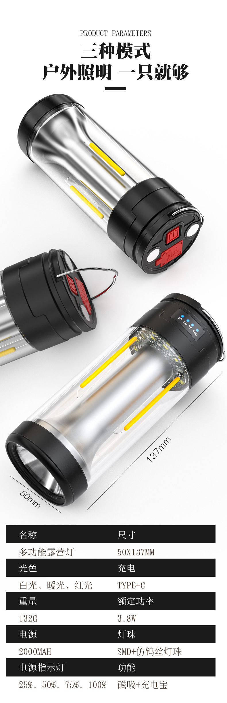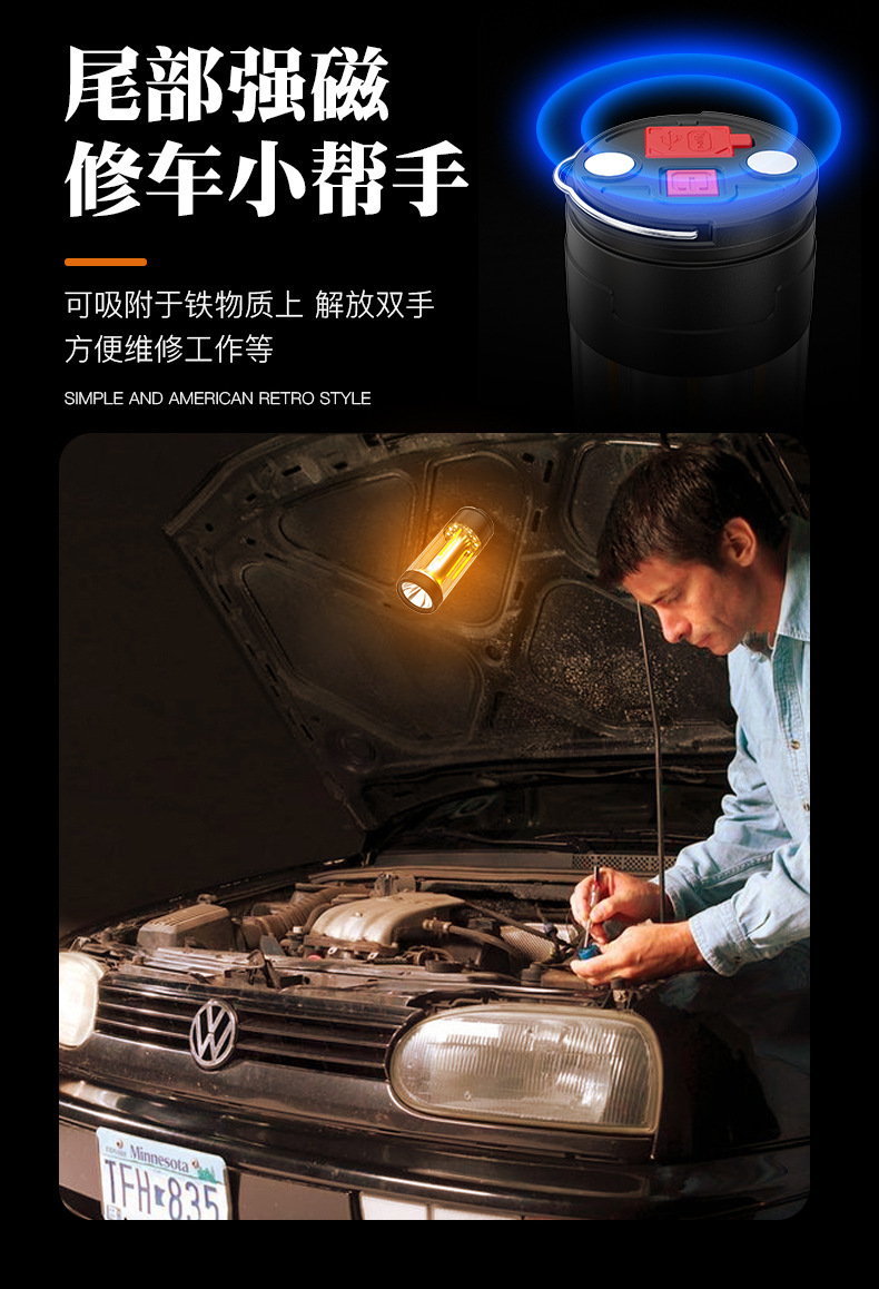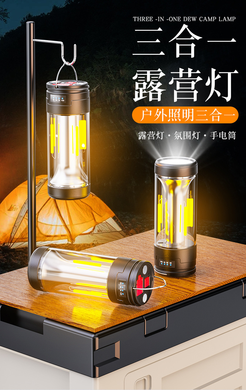 新款露營燈三合一多功能工作燈戶外帳篷燈可充電磁吸警示燈野營燈