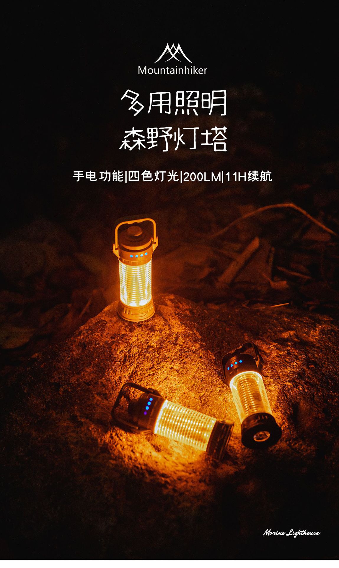 山之客森野燈塔 戶外露營燈強光氛圍燈可攜式掛立雙用充電營地燈
