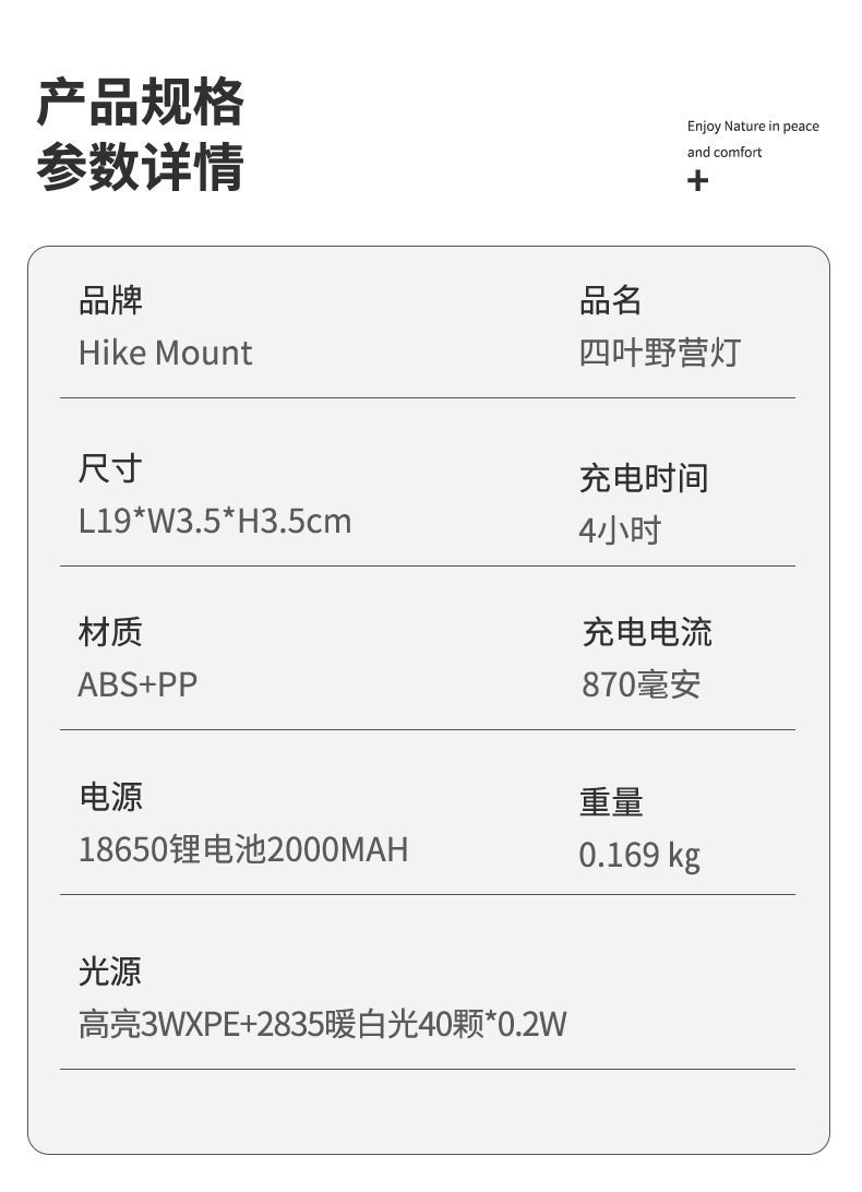 | 顔色 | 四葉露營燈 |