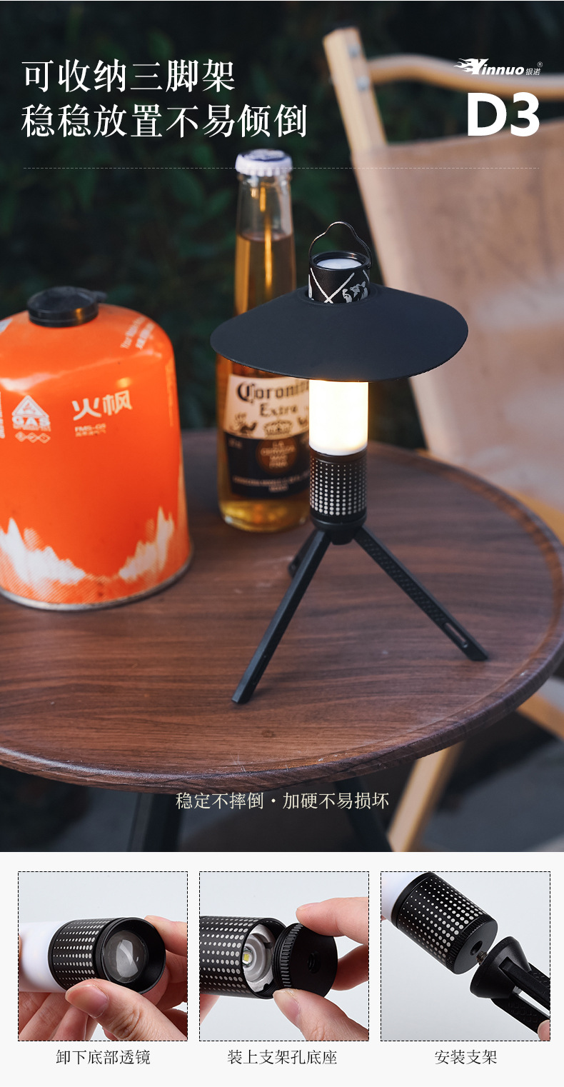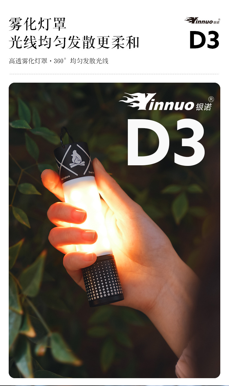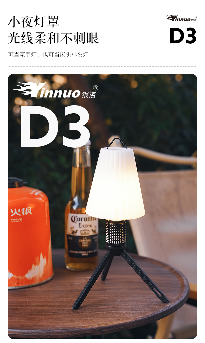 銀諾D3露營燈戶外營地燈氛圍帳篷燈掛燈led超長續航充電燈可攜式