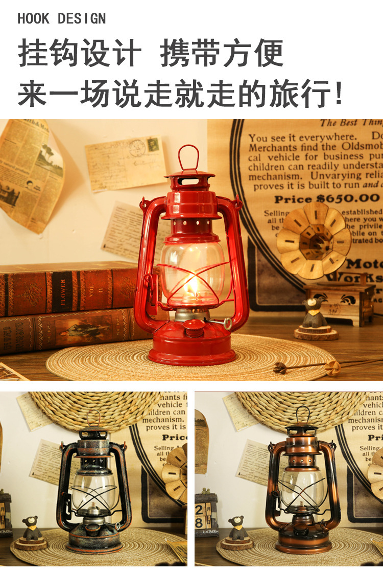 24鐵藝煤油燈家居擺設復古燈戶外帳篷馬燈酒吧客棧老油燈露營燈