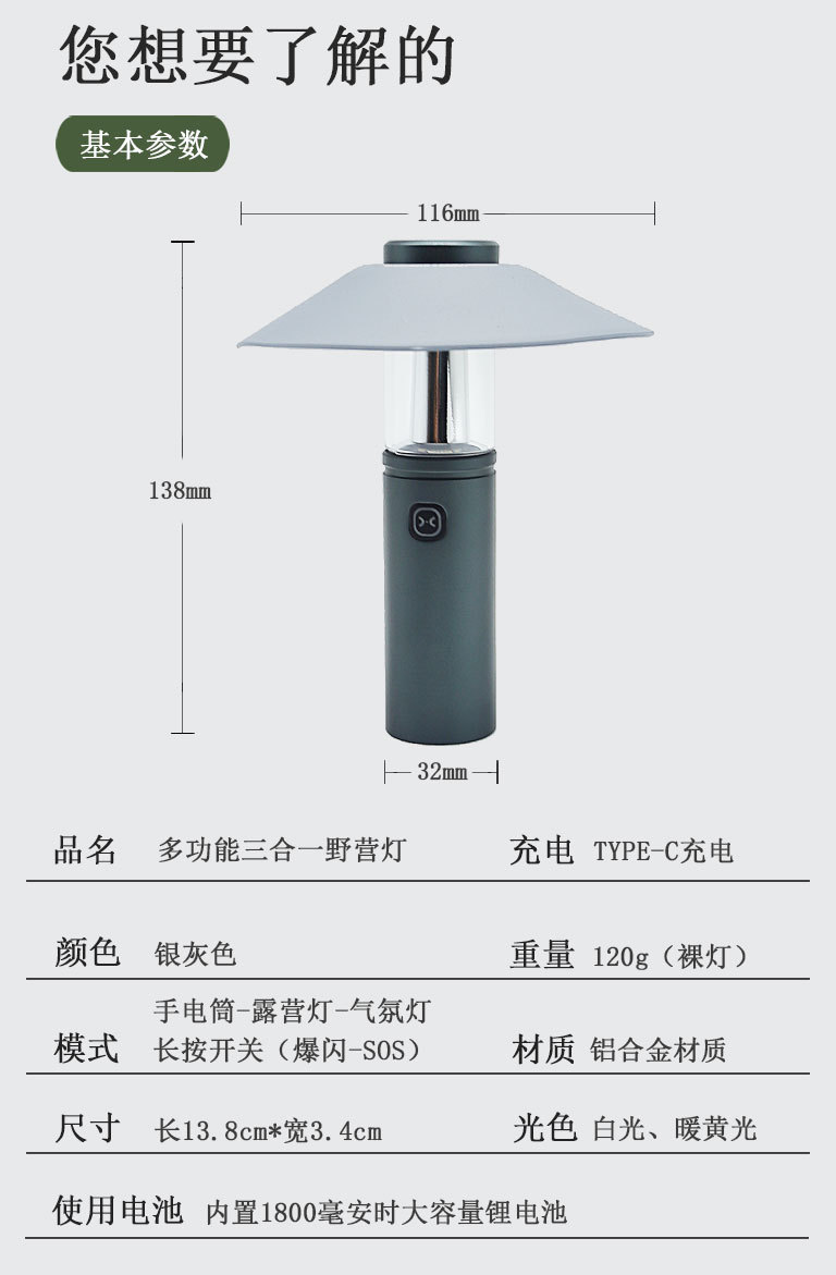 | 顔色 | 三合一露營燈 |
