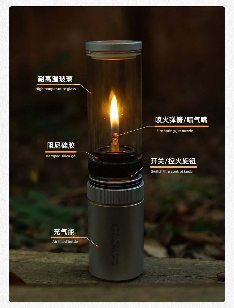 戶外燭燈瓦斯露營燈帳篷浪漫氛圍燈可充氣燭光燈照明玻璃小汽燈