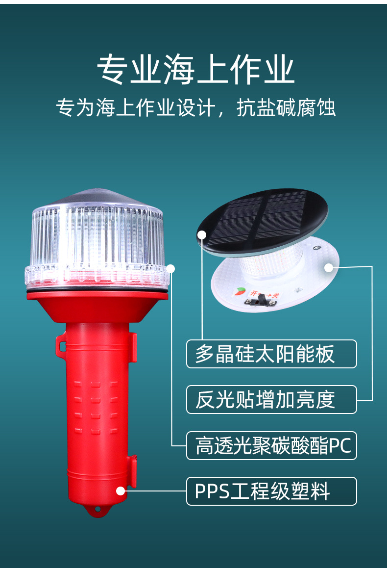 信號燈船用LED太陽能充電航標燈網標燈船上航行燈警示閃光三色燈