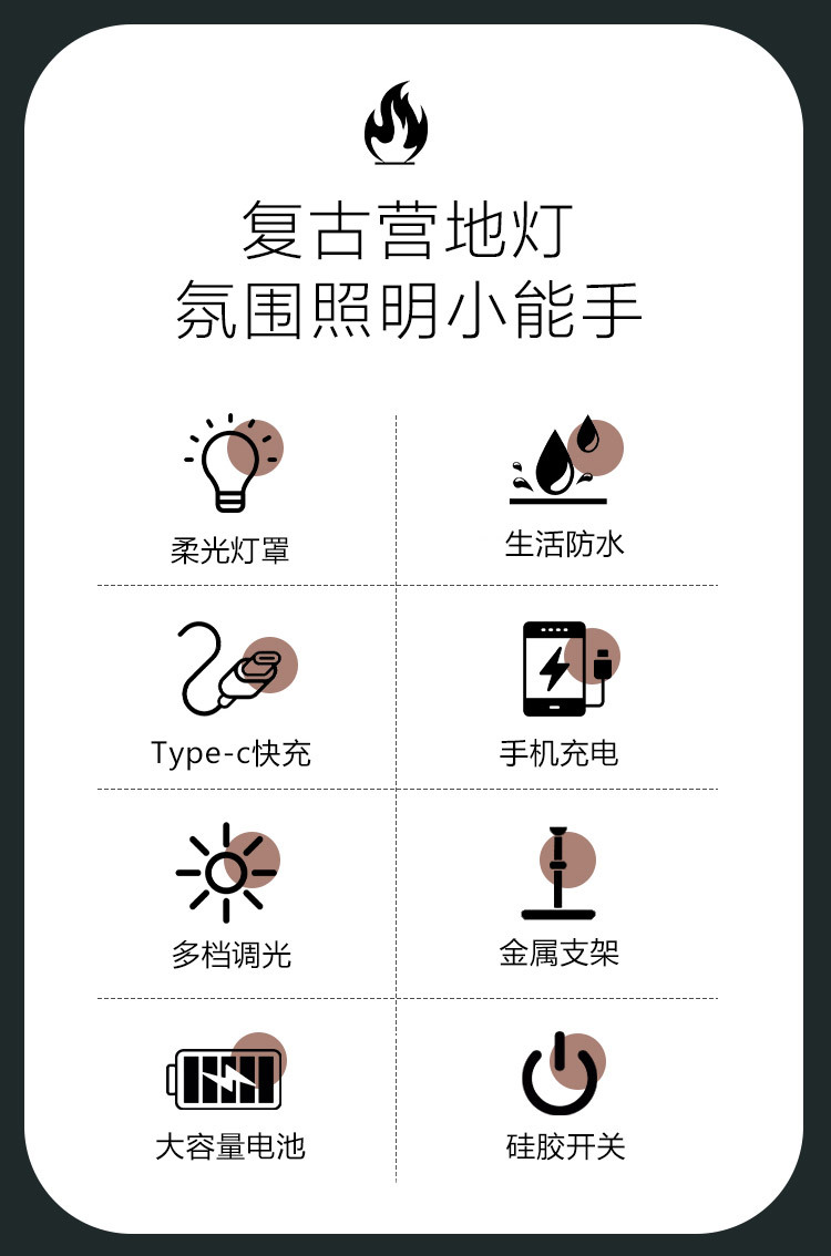 山地野營燈露營燈帶支架戶外防水可懸掛營地氛圍燈馬燈
