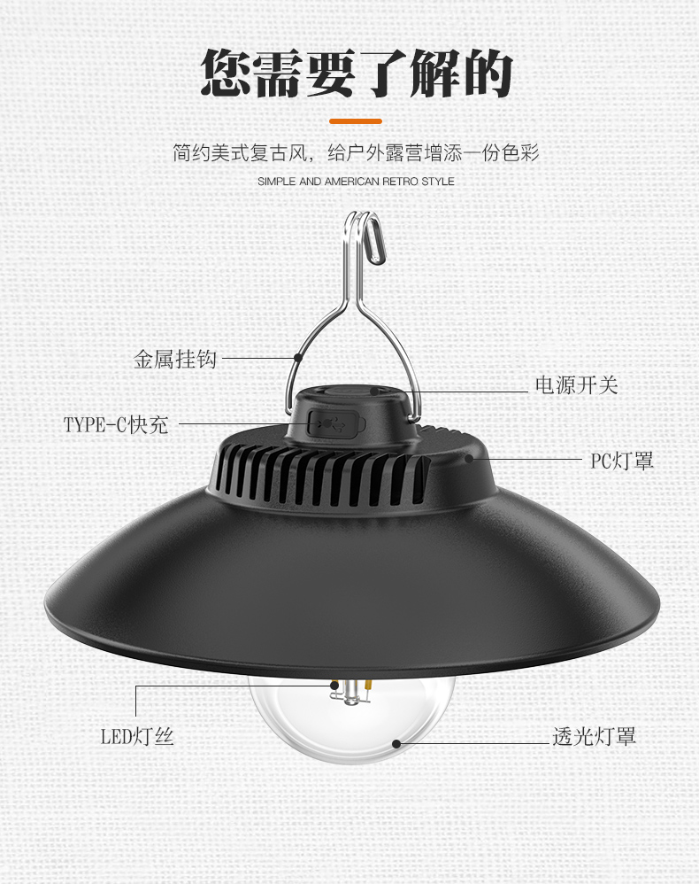 復古戶外露營燈氛圍感照明超長續航野營帳篷天幕營地充電led掛燈