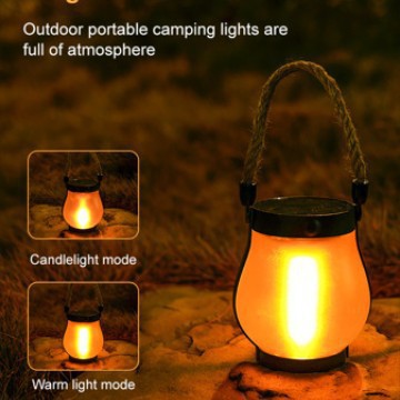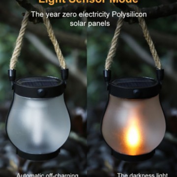 新款太陽能火焰燈麻繩燈籠庭院花園裝飾戶外防水US麥太保