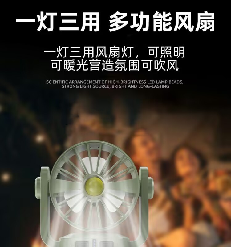 戶外太陽能旅行手提燈照明風扇雙模式長續航掛鉤露營燈可攜式