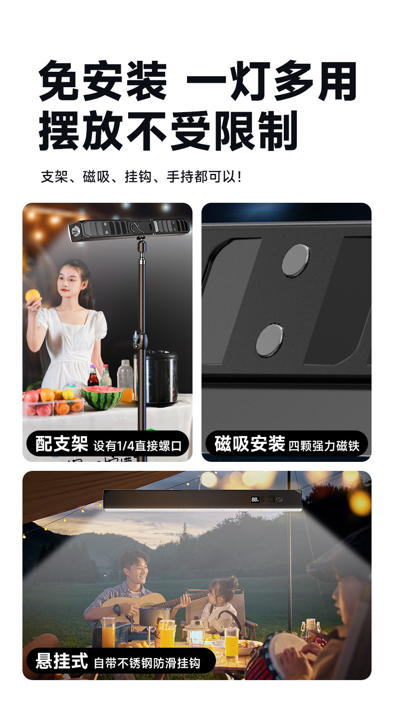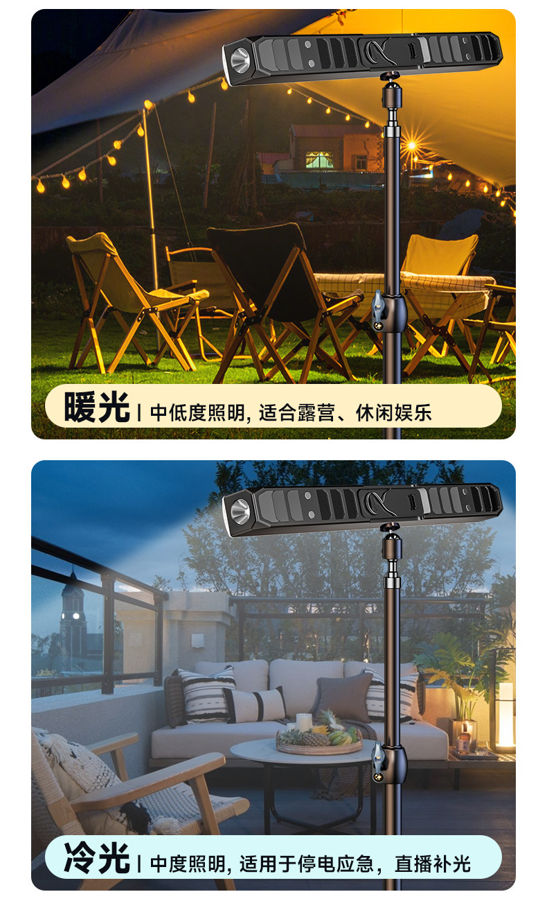 新款露營燈停電應急燈LED燈充電式移動三色調光強光支架夜市擺攤