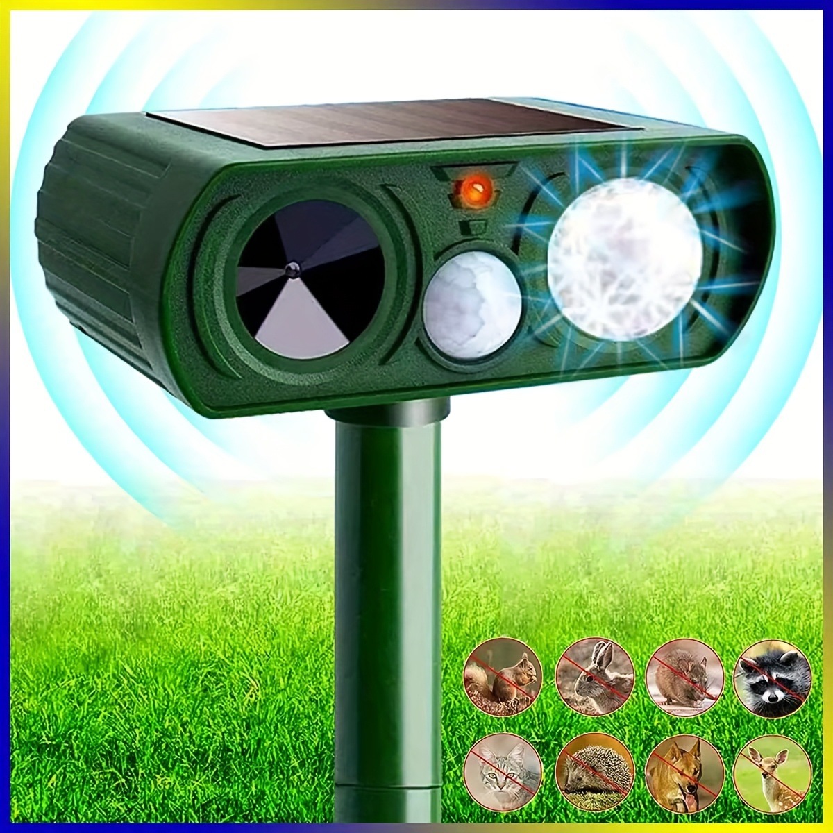 Solar Ultrasonic Animal Repeller LED Flashing Light Fox
