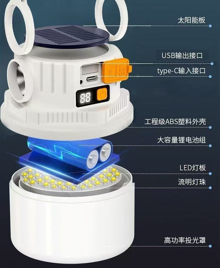 .露營充電太陽能戶外超長續航夜市照明燈擺攤地攤帳篷停電應急家