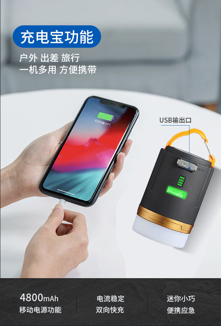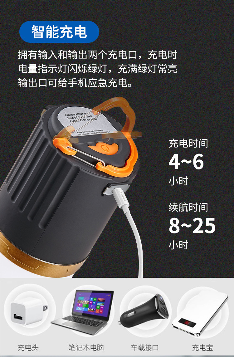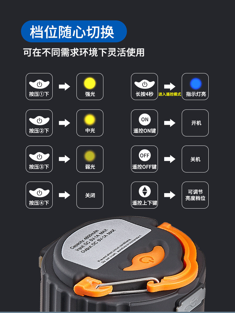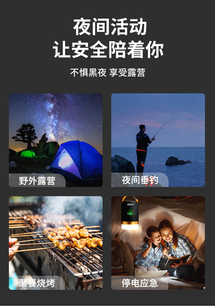 戶外強光遙控露營燈帳篷充電LED可攜式照明燈磁吸應急行動電源野營燈