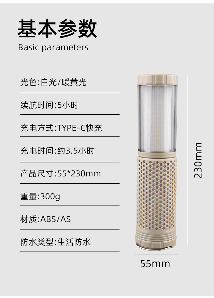 | 顔色 | 卡其色伸縮露營燈 |