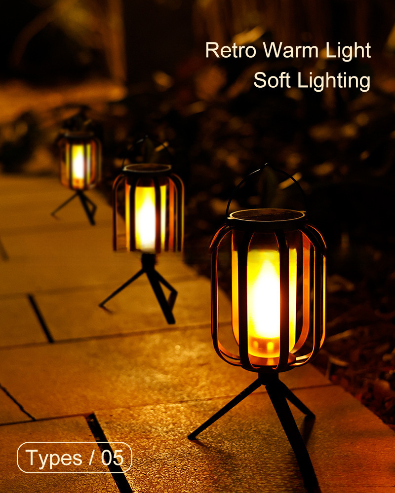 新款太陽能火焰野營燈戶外裝飾掛燈庭院裝飾三腳架氛圍