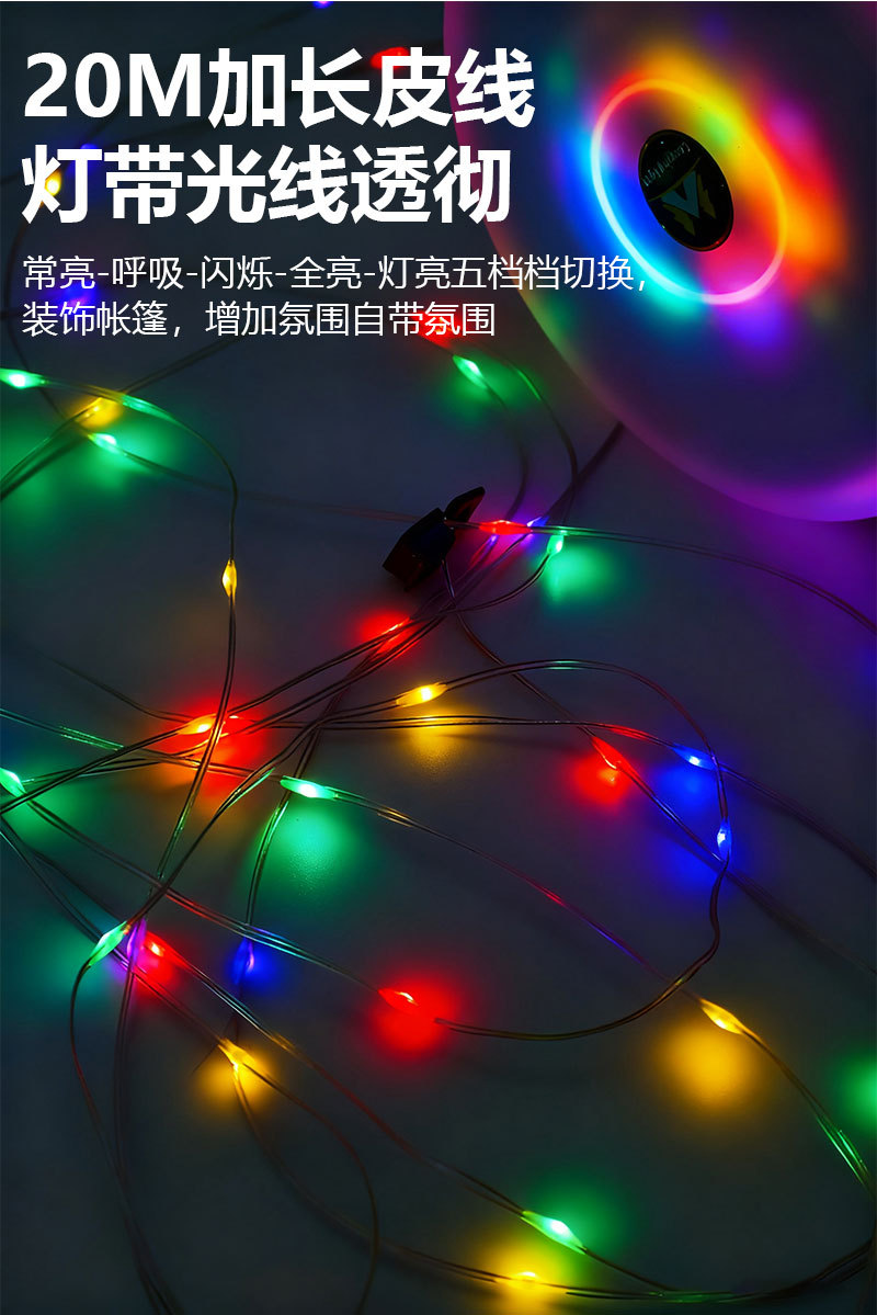 戶外led露營燈超長續航七彩燈串usb充電卷尺收納多功能帳篷照明燈