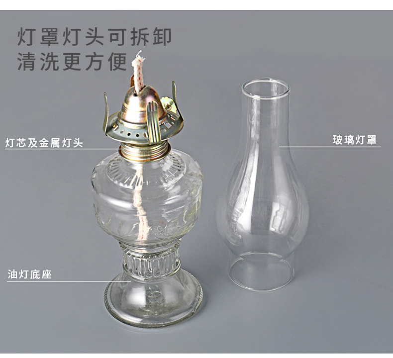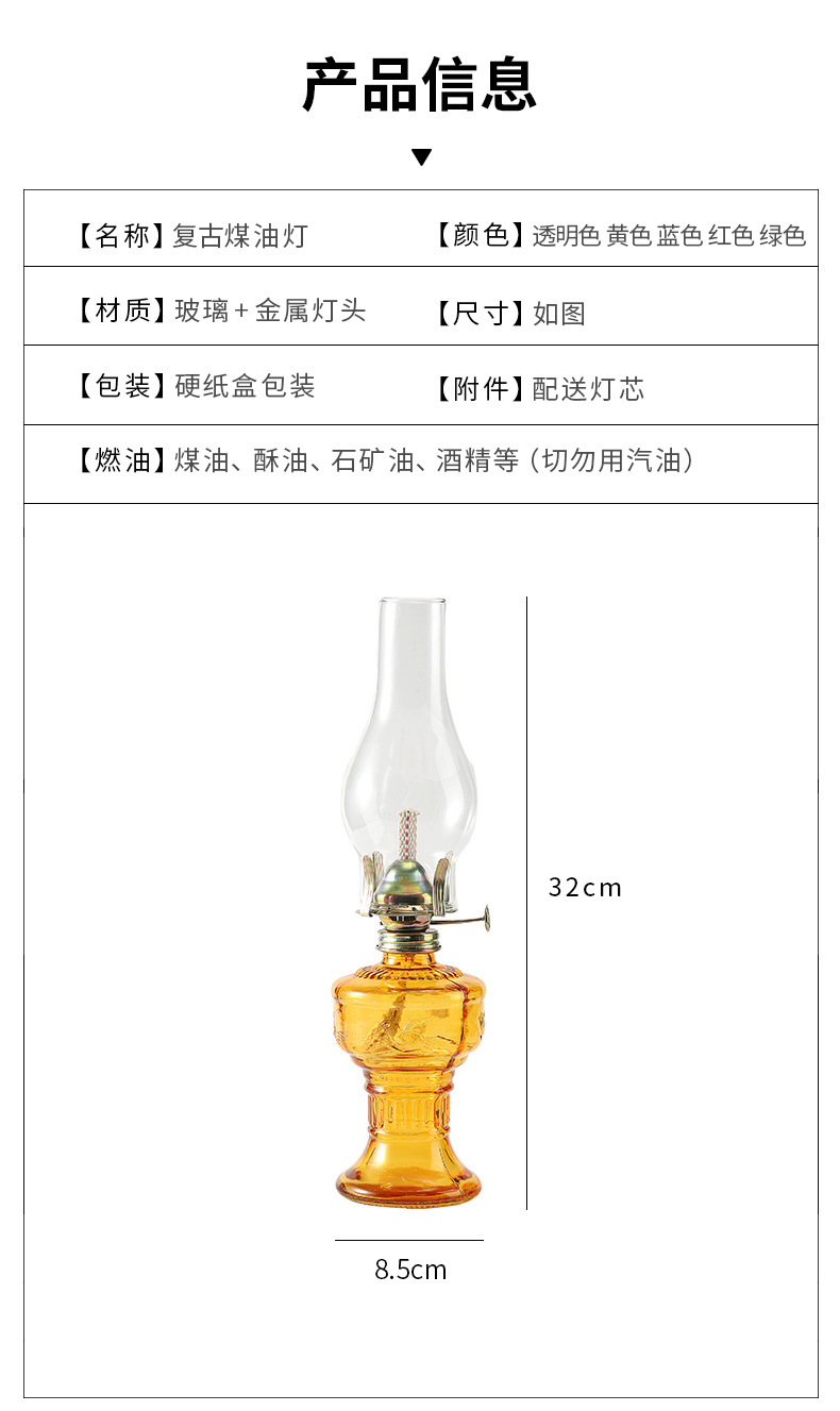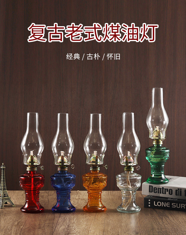 復古玻璃煤油燈馬燈老式玻璃燈長明燈裝飾燈擺件氛圍單個盒裝