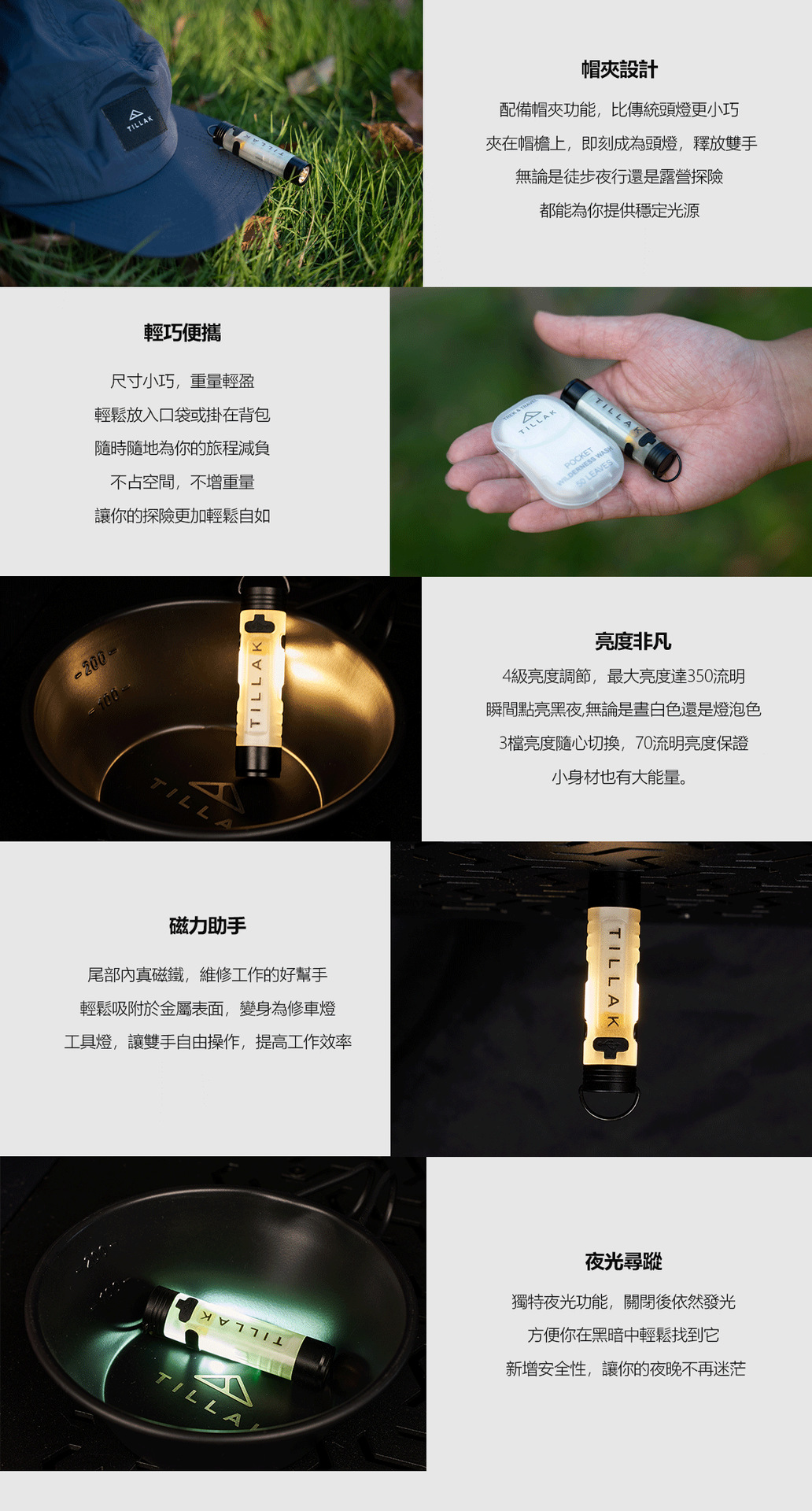 Tillak迷你口袋帽夾燈 戶外露營氛圍led長續航救災應急手電燈照明